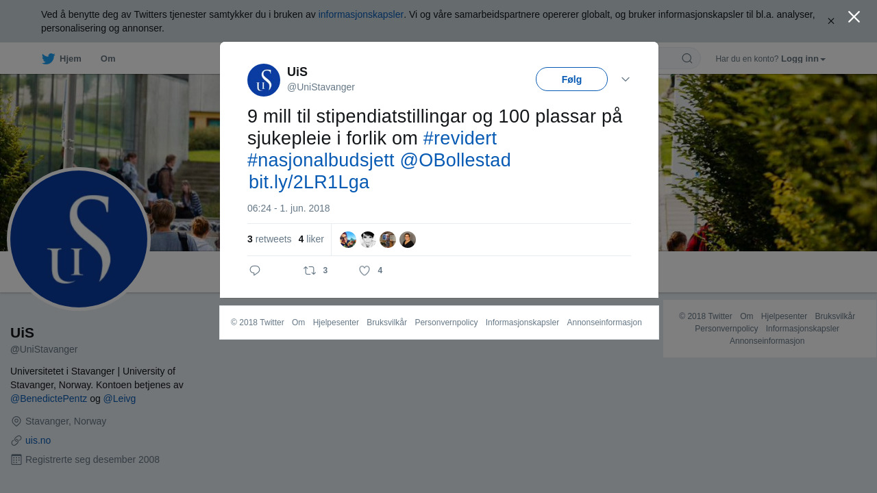 RT @UniStavanger: 9 mill til stipendiatstillingar og 100 plassar på sjukepleie i forlik om #revidert #nasjonalbudsjett @OBollestad https://t.co/D9McSjKA2A