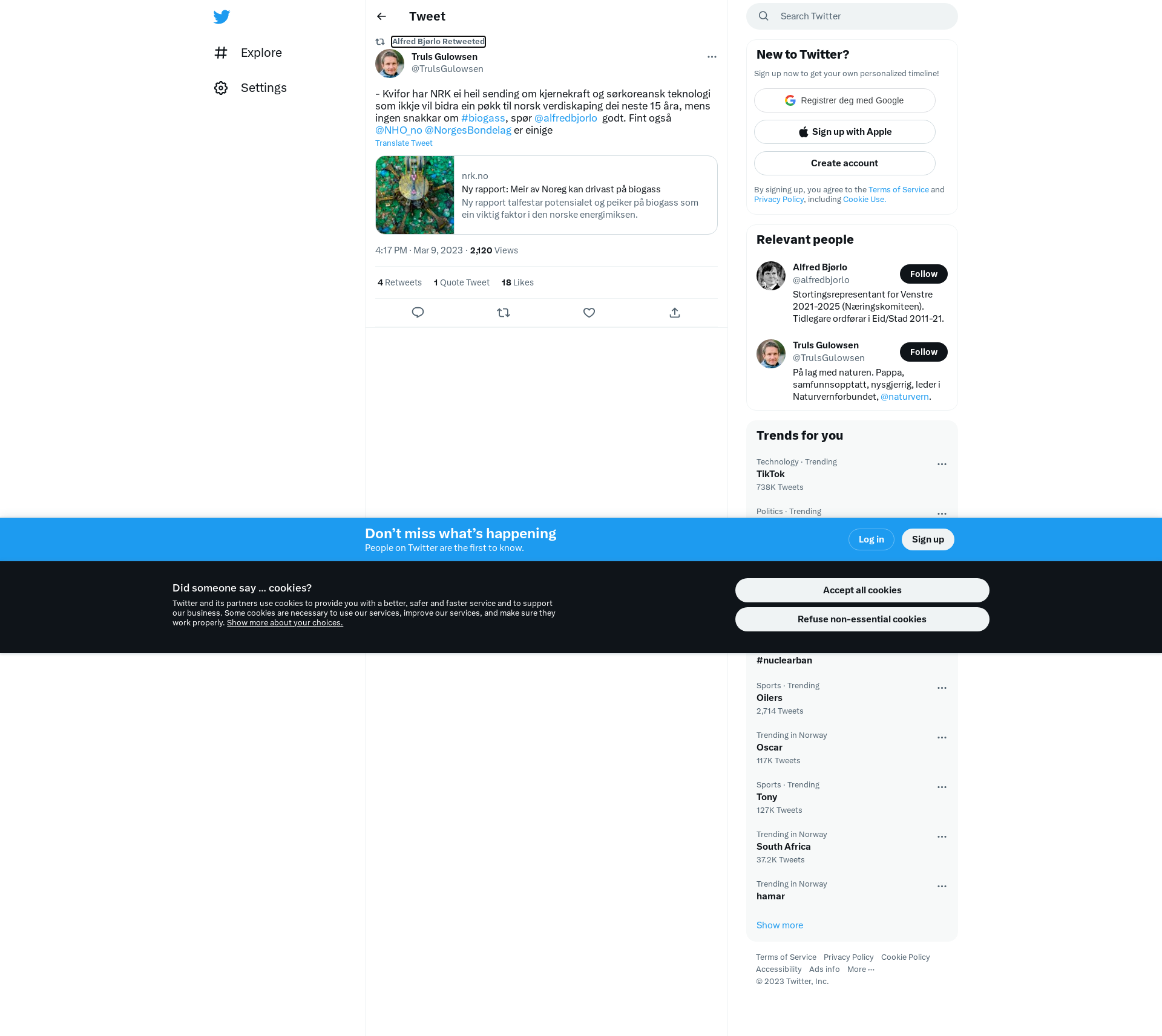 RT @TrulsGulowsen: - Kvifor har NRK ei heil sending om kjernekraft og sørkoreansk teknologi som ikkje vil bidra ein pøkk til norsk verdiskaping dei neste 15 åra, mens ingen snakkar om #biogass, spør @alfredbjorlo godt. Fint også @NHO_no @NorgesBondelag er einige https://t.co/YLYpQEXUL9
