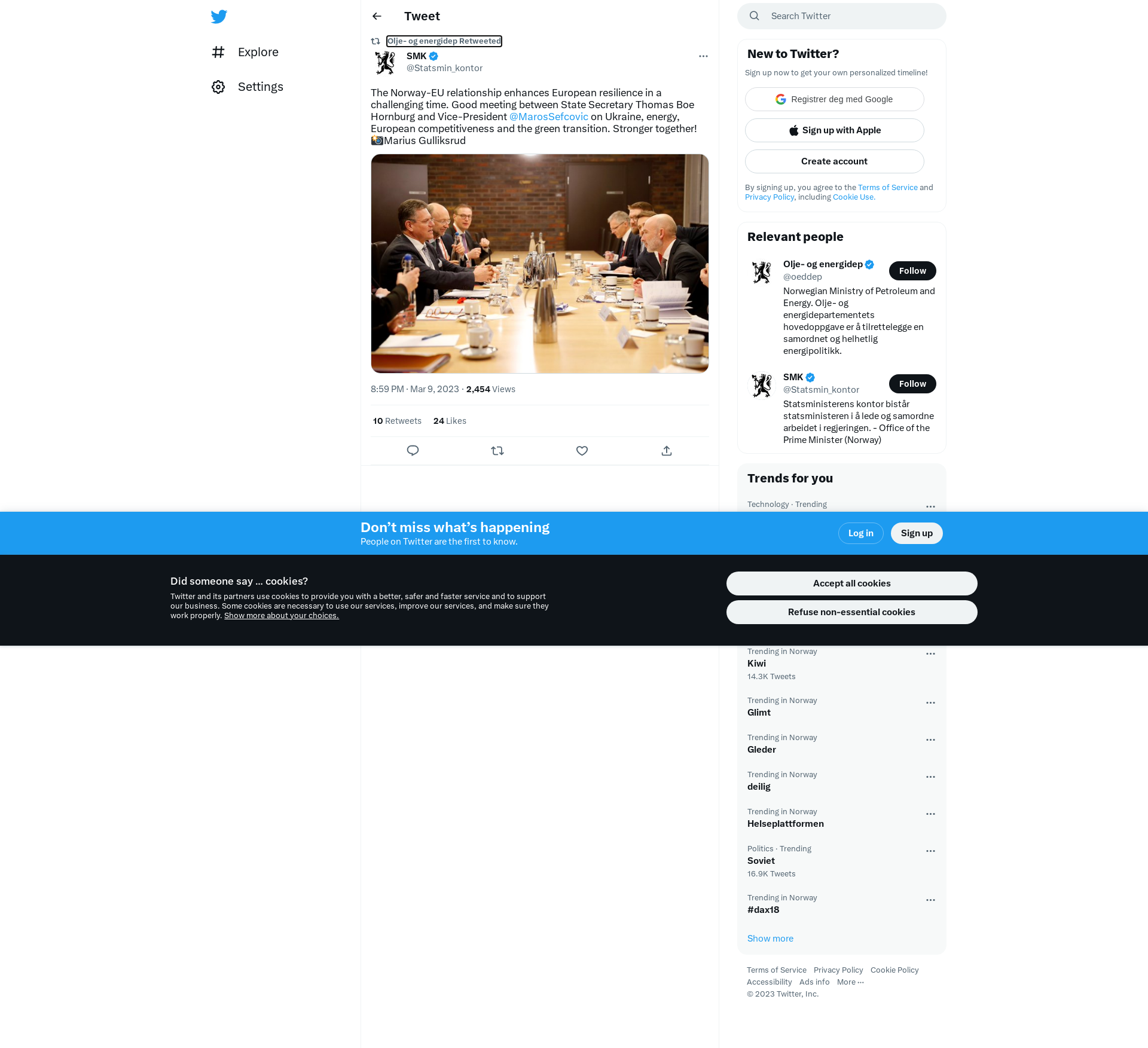RT @Statsmin_kontor: The Norway-EU relationship enhances European resilience in a challenging time. Good meeting between State Secretary Thomas Boe Hornburg and Vice-President @MarosSefcovic on Ukraine, energy, European competitiveness and the green transition. Stronger together! \n📸Marius Gulliksrud https://t.co/pq2x2oRI9T