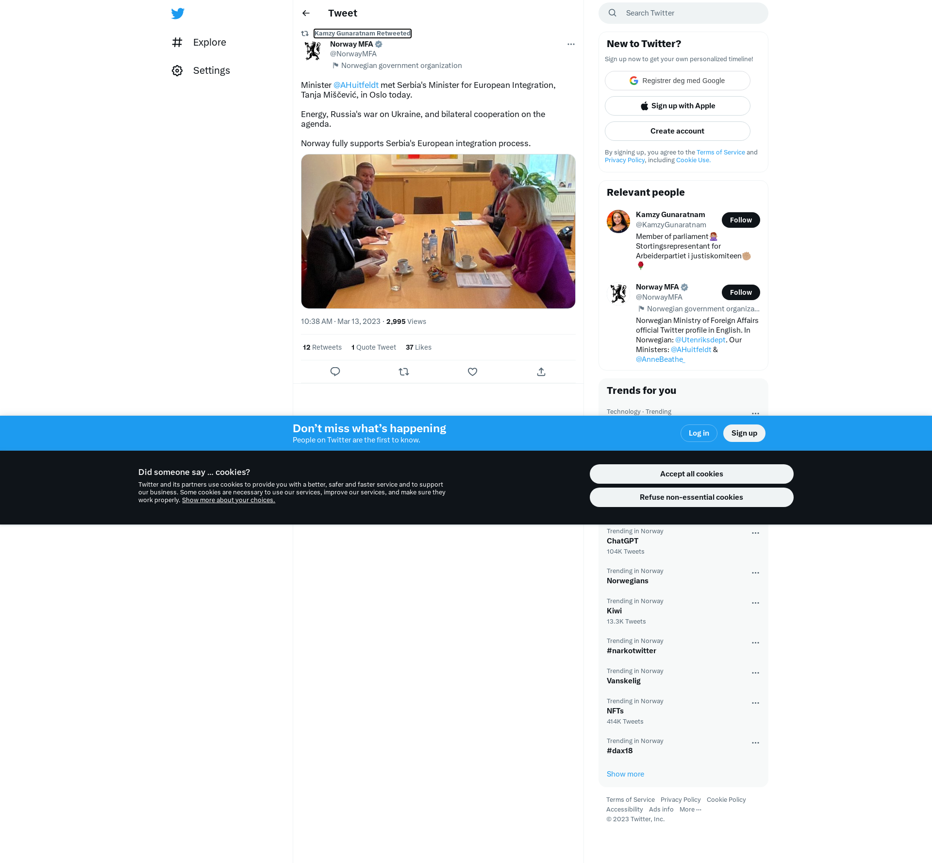 RT @NorwayMFA: Minister @AHuitfeldt met Serbia's Minister for European Integration, Tanja Miščević, in Oslo today. \n\nEnergy, Russia's war o…