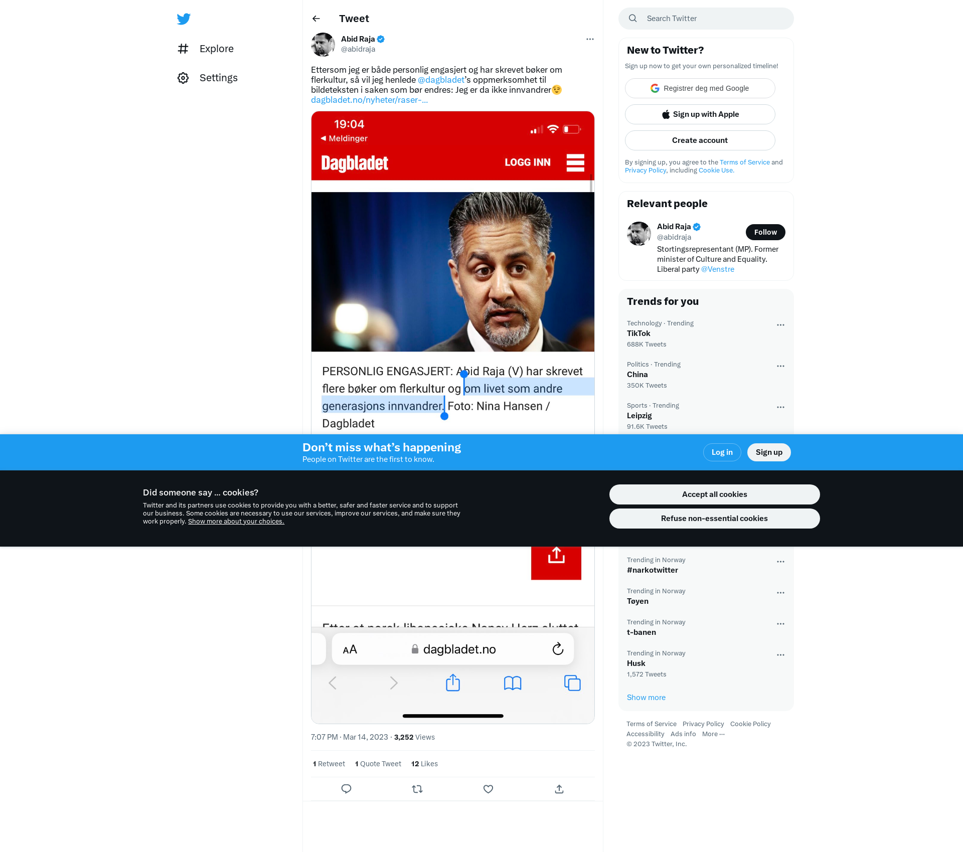 Ettersom jeg er både personlig engasjert og har skrevet bøker om flerkultur, så vil jeg henlede @dagbladet’s oppmerksomhet til bildeteksten i saken som bør endres: Jeg er da ikke innvandrer😉 https://t.co/nzQafXDDNA https://t.co/2I8S3So313
