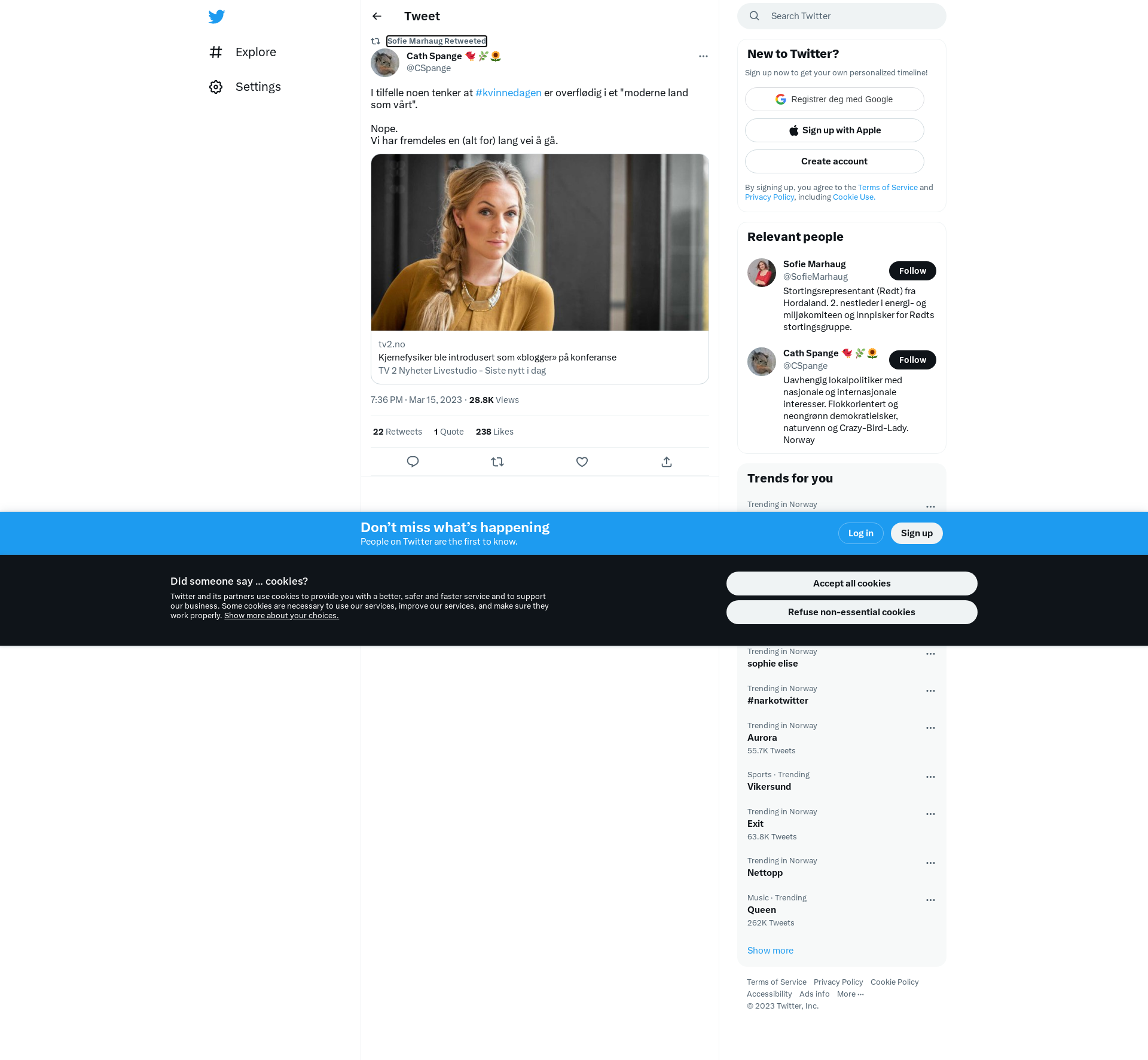 RT @CSpange: I tilfelle noen tenker at #kvinnedagen er overflødig i et "moderne land som vårt".\n\nNope.\nVi har fremdeles en (alt for) lang v…