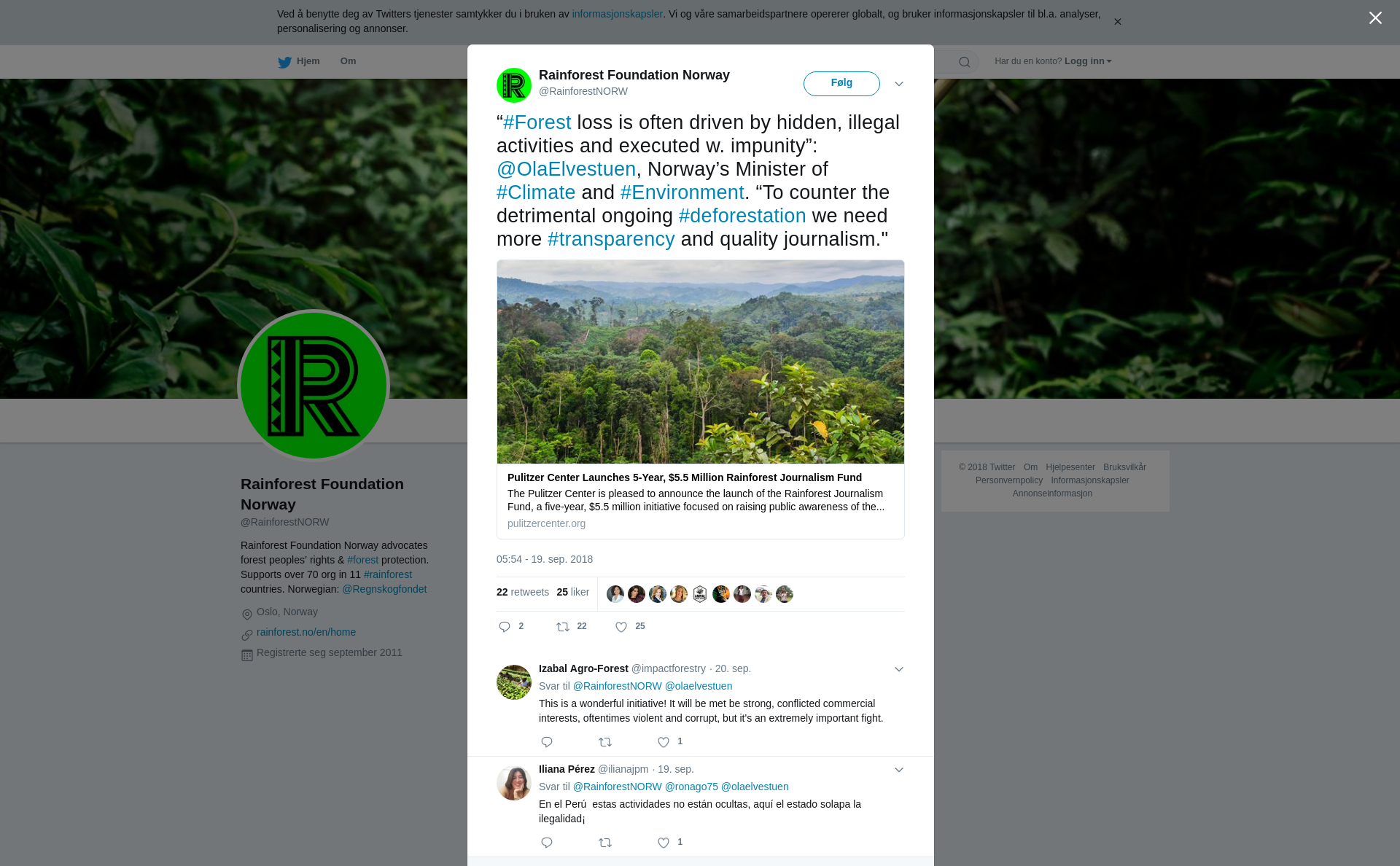 RT @RainforestNORW: “#Forest loss is often driven by hidden, illegal activities and executed w. impunity”: @OlaElvestuen, Norway’s Minister of #Climate and #Environment. “To counter the detrimental ongoing #deforestation we need more #transparency and quality journalism." https://t.co/0TIHyeAL8x
