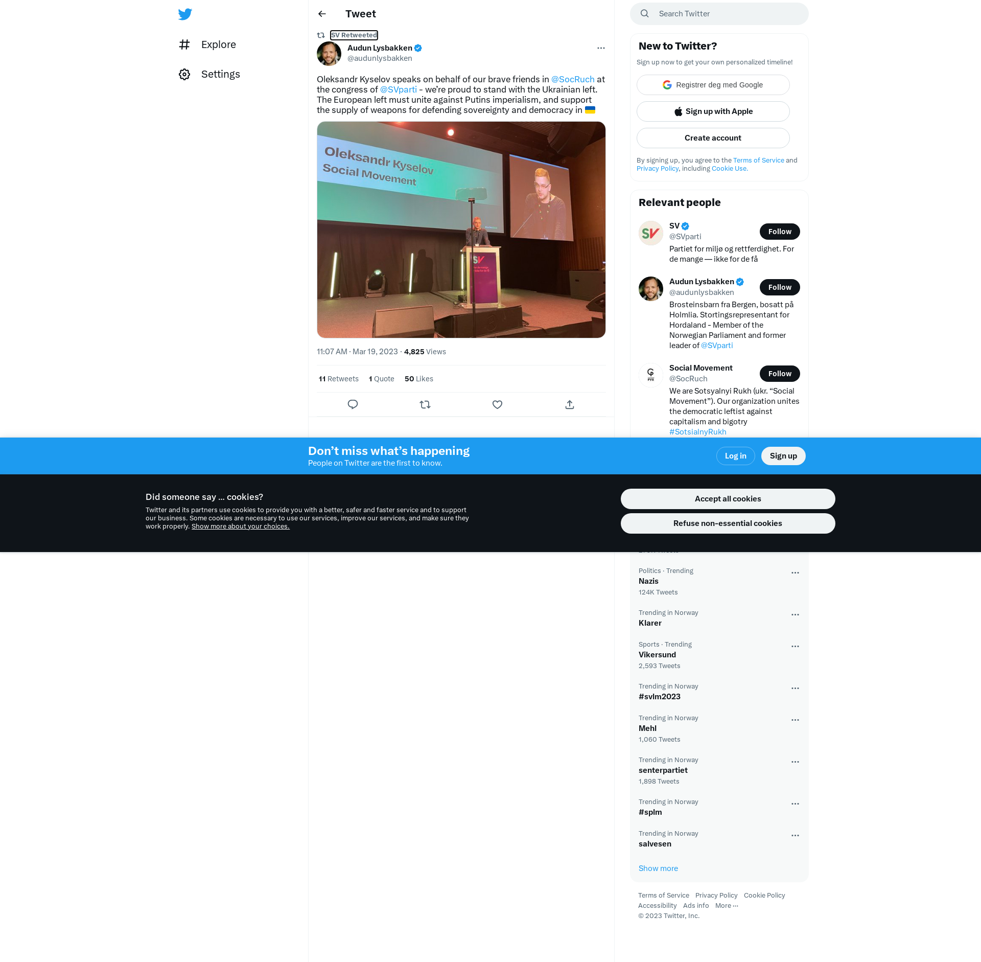 RT @audunlysbakken: Oleksandr Kyselov speaks on behalf of our brave friends in @SocRuch at the congress of @SVparti - we’re proud to stand with the Ukrainian left. The European left must unite against Putins imperialism, and support the supply of weapons for defending sovereignty and democracy in 🇺🇦 https://t.co/erP8fu4fYC
