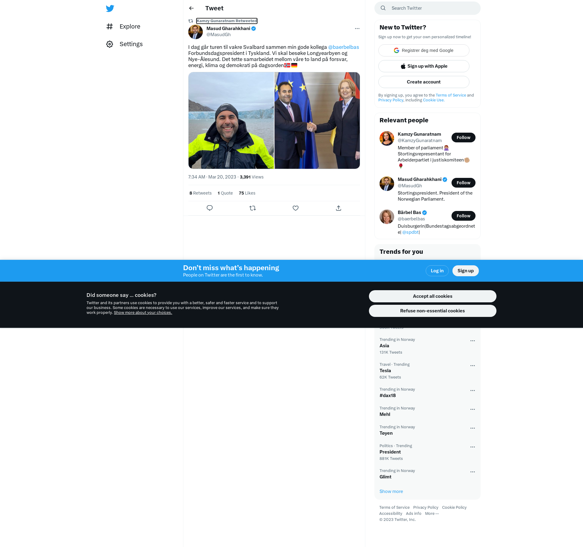 RT @MasudGh: I dag går turen til vakre Svalbard sammen min gode kollega @baerbelbas Forbundsdagspresident i Tyskland. Vi skal besøke Longyearbyen og Nye-Ålesund. Det tette samarbeidet mellom våre to land på forsvar, energi, klima og demokrati på dagsorden🇳🇴🇩🇪 https://t.co/94V8FleSfz