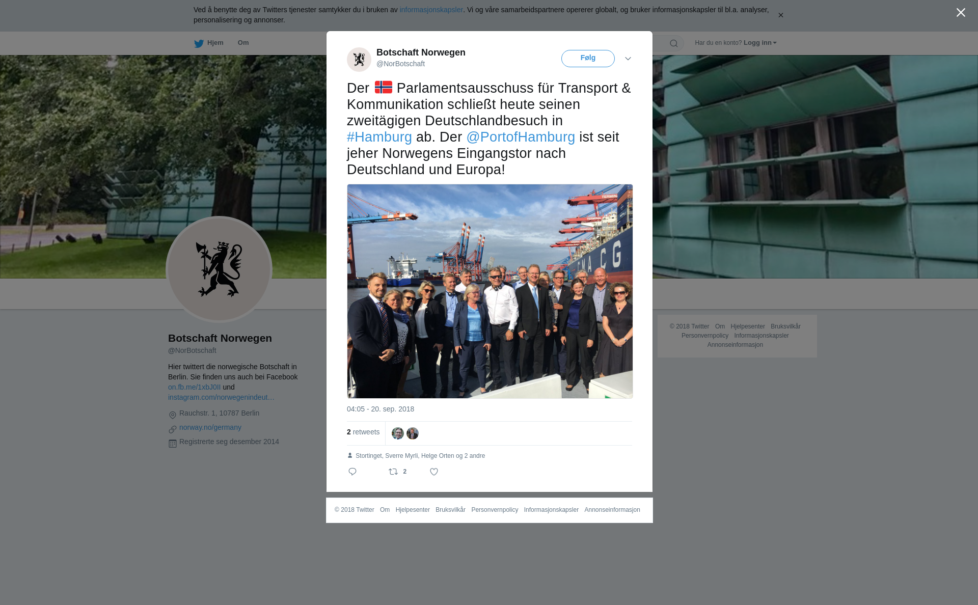 RT @NorBotschaft: Der 🇳🇴 Parlamentsausschuss für Transport & Kommunikation schließt heute seinen zweitägigen Deutschlandbesuch in #Hamburg ab. Der @PortofHamburg ist seit jeher Norwegens Eingangstor nach Deutschland und Europa! https://t.co/fTxpBLROF0