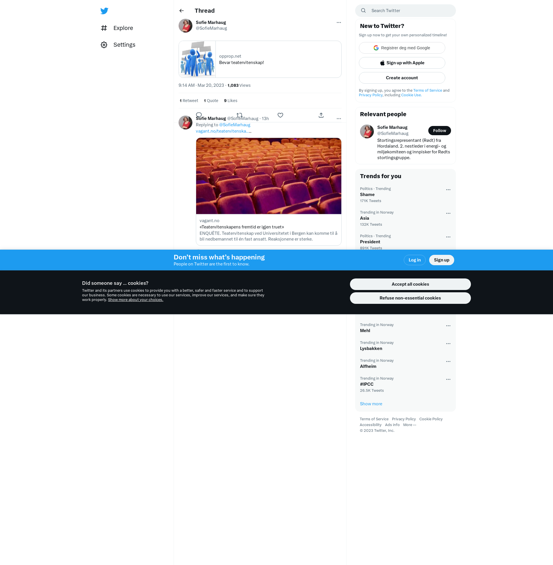 (English below)Teatervitenskap ved Universitetet i Bergen trues nå igjen med nedleggelseLedelsen ved Humanistisk fakultet ved Universitetet i Bergen foreslår i Faglig bemanningsplan 2023-25 at to av tre vitenskapelige stillinger i teatervitenskap fjernes i løpet av denne perioden. En stilling som nå er ledig skal ikke gjenbesettes og det samme gjelder en aldersavgang i 2024. Forslaget skal behandles i fakultetsstyret tirsdag 21. mars.Fakultetsstyrets forslag vil være et stort steg i retning av n