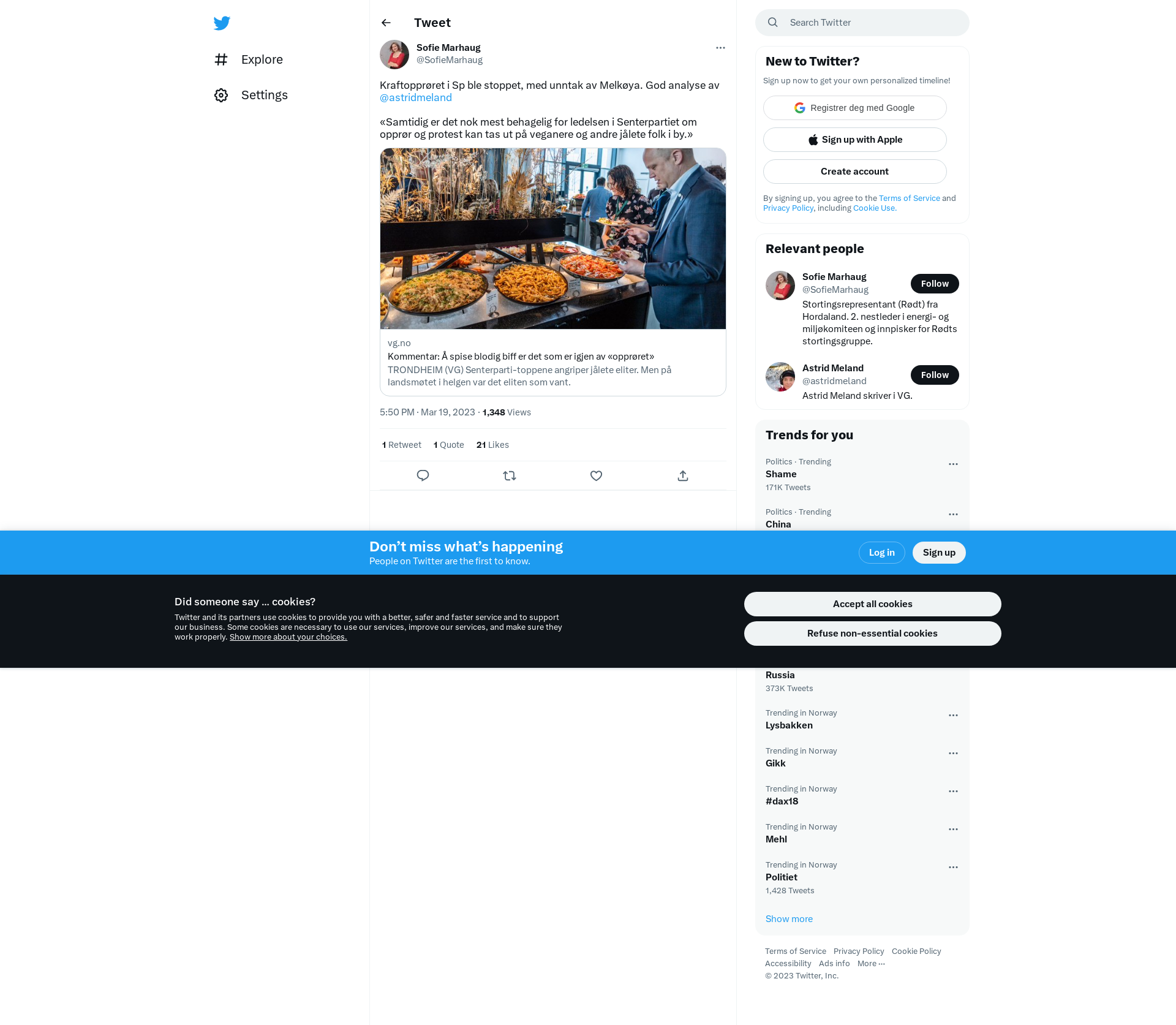 Kraftopprøret i Sp ble stoppet, med unntak av Melkøya. God analyse av @astridmeland \n\n«Samtidig er det nok mest behagelig for ledelsen i Senterpartiet om opprør og protest kan tas ut på veganere og andre jålete folk i by.»\n\nhttps://t.co/ZNZIwn1bOc