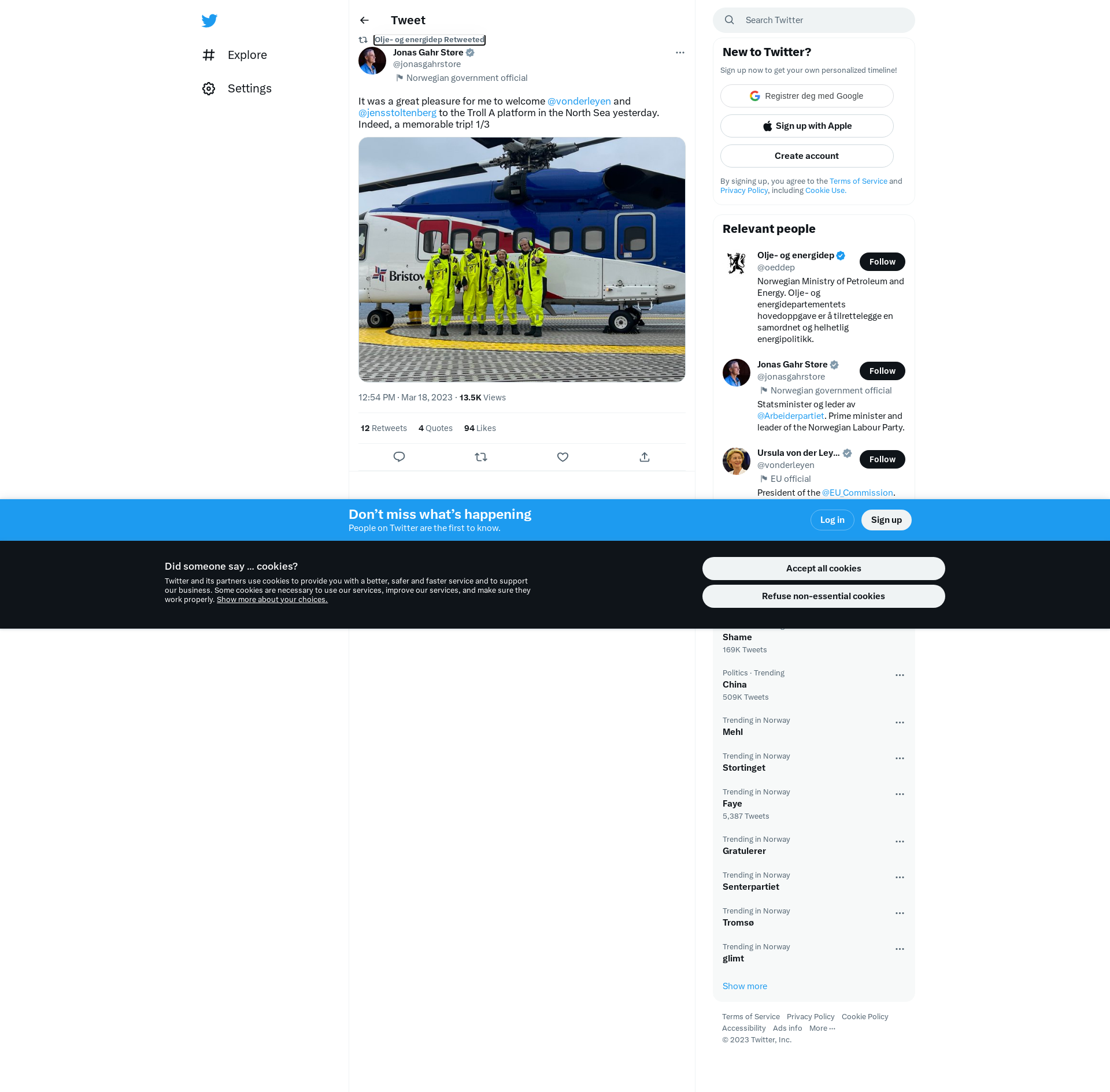 RT @jonasgahrstore: It was a great pleasure for me to welcome @vonderleyen and @jensstoltenberg to the Troll A platform in the North Sea yesterday. Indeed, a memorable trip! 1/3 https://t.co/KacjC7zzsh