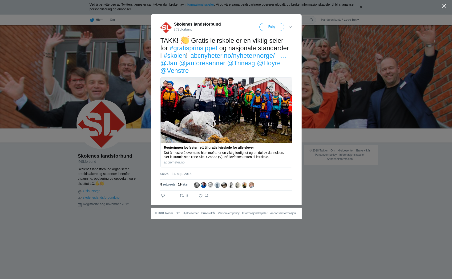 RT @SLforbund: TAKK! 👏 Gratis leirskole er en viktig seier for #gratisprinsippet og nasjonale standarder i #skolen! https://t.co/eB3NxgU9zX @Jan @jantoresanner @Trinesg @Hoyre @Venstre