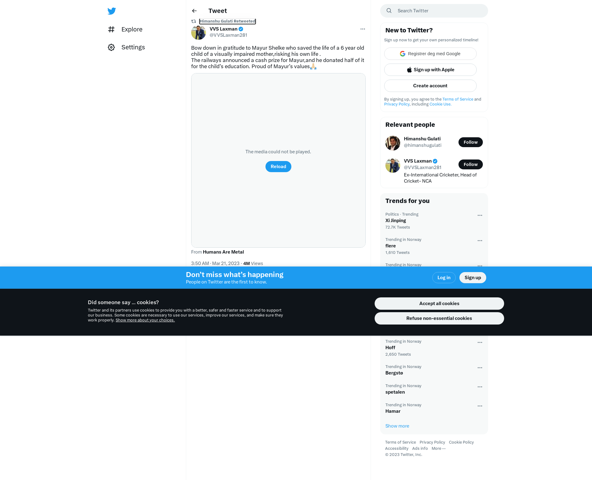 RT @VVSLaxman281: Bow down in gratitude to Mayur Shelke who saved the life of a 6 year old child of a visually impaired mother,risking his own life . \nThe railways announced a cash prize for Mayur,and he donated half of it for the child’s education. Proud of Mayur’s values🙏🏼https://t.co/Mc9ct5Z63a