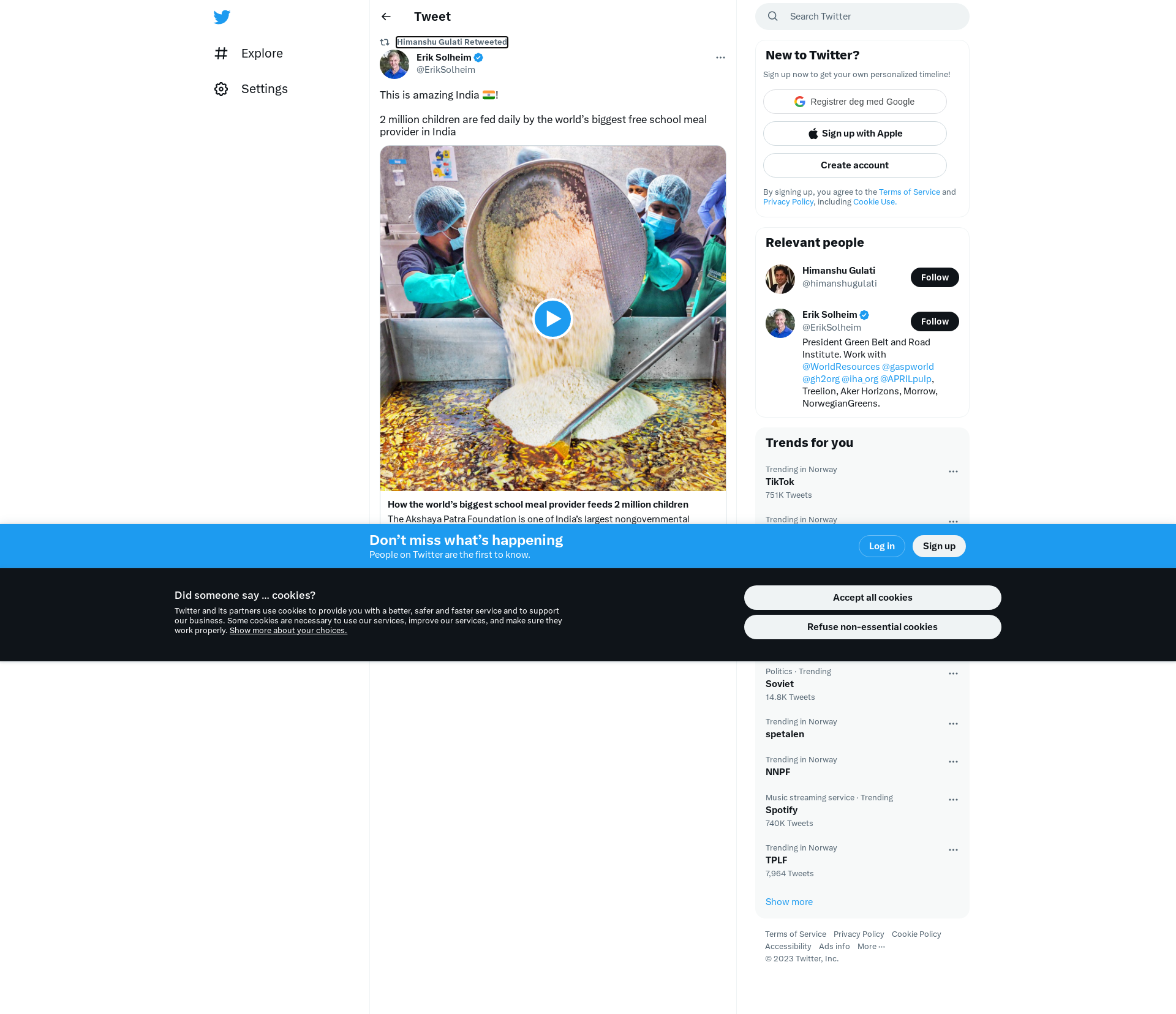 RT @ErikSolheim: This is amazing India 🇮🇳!\n\n2 million children are fed daily by the world’s biggest free school meal provider in India\n\n ht…