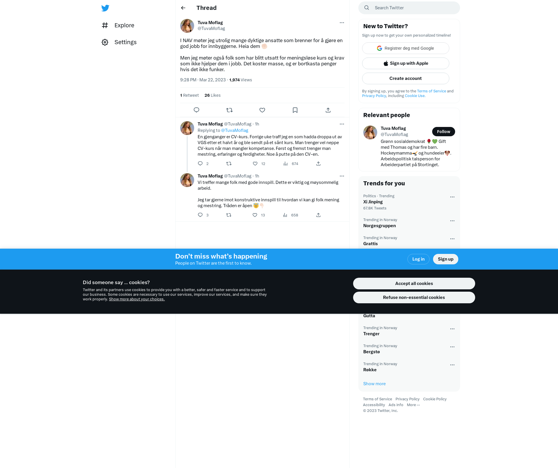 I NAV møter jeg utrolig mange dyktige ansatte som brenner for å gjøre en god jobb for innbyggerne. Heia dem ✊🏻\n\nMen jeg møter også folk som har blitt utsatt for meningsløse kurs og krav som ikke hjelper dem i jobb. Det koster masse, og er bortkasta penger hvis det ikke funker.