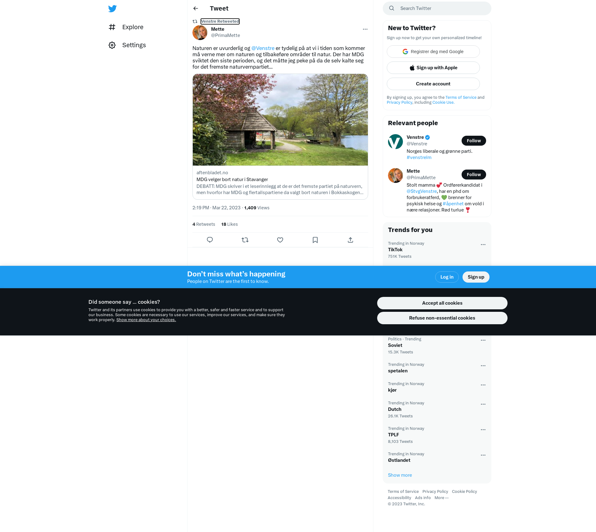 RT @PrimaMette: Naturen er uvurderlig og @Venstre er tydelig på at vi i tiden som kommer må verne mer om naturen og tilbakeføre områder til natur. Der har MDG sviktet den siste perioden, og det måtte jeg peke på da de selv kalte seg for det fremste naturvernpartiet... https://t.co/YvuAiYmN7v
