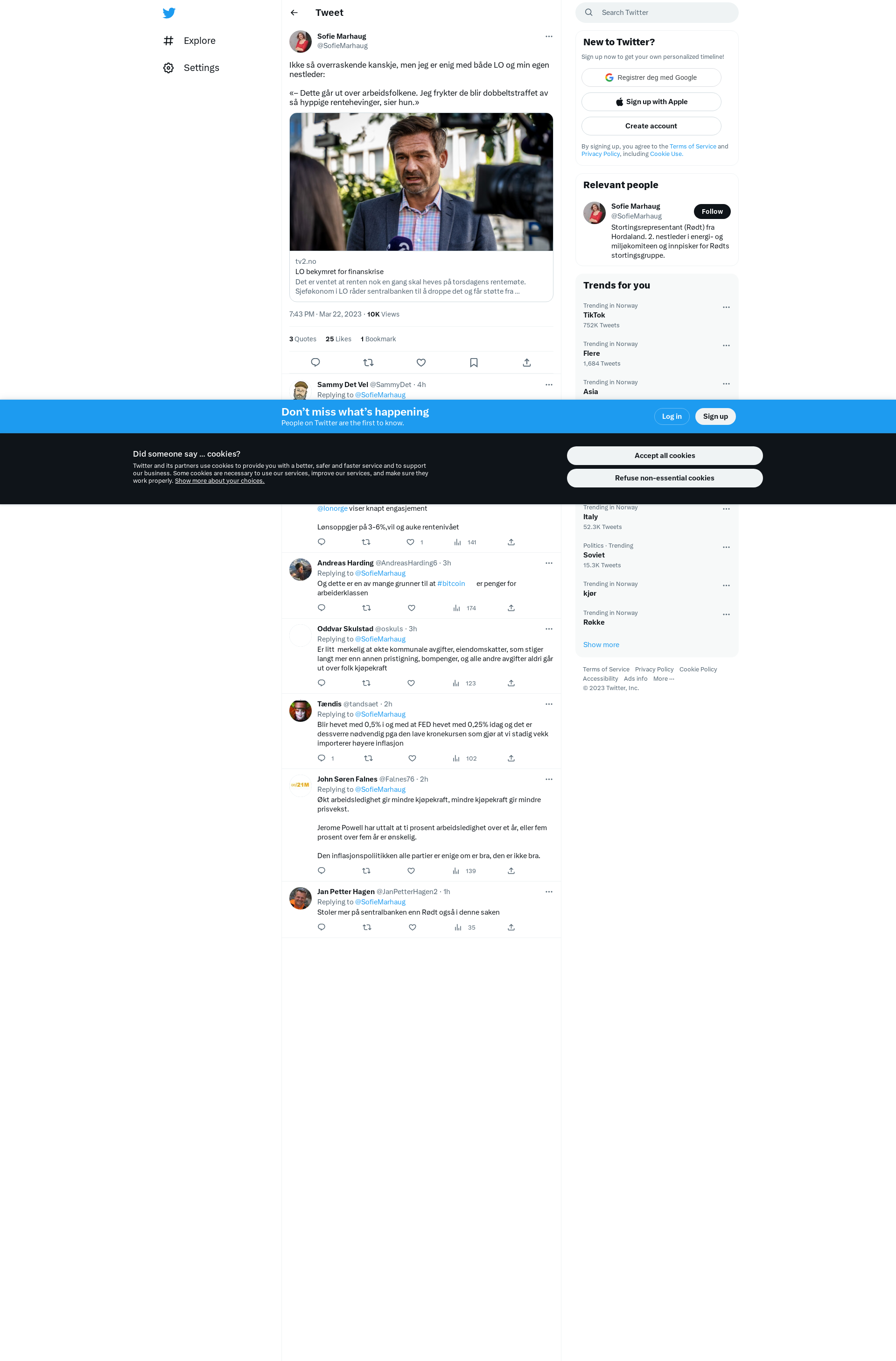 Ikke så overraskende kanskje, men jeg er enig med både LO og min egen nestleder:\n\n«– Dette går ut over arbeidsfolkene. Jeg frykter de blir dobbeltstraffet av så hyppige rentehevinger, sier hun.»\n\nhttps://t.co/TSuqeolFBd