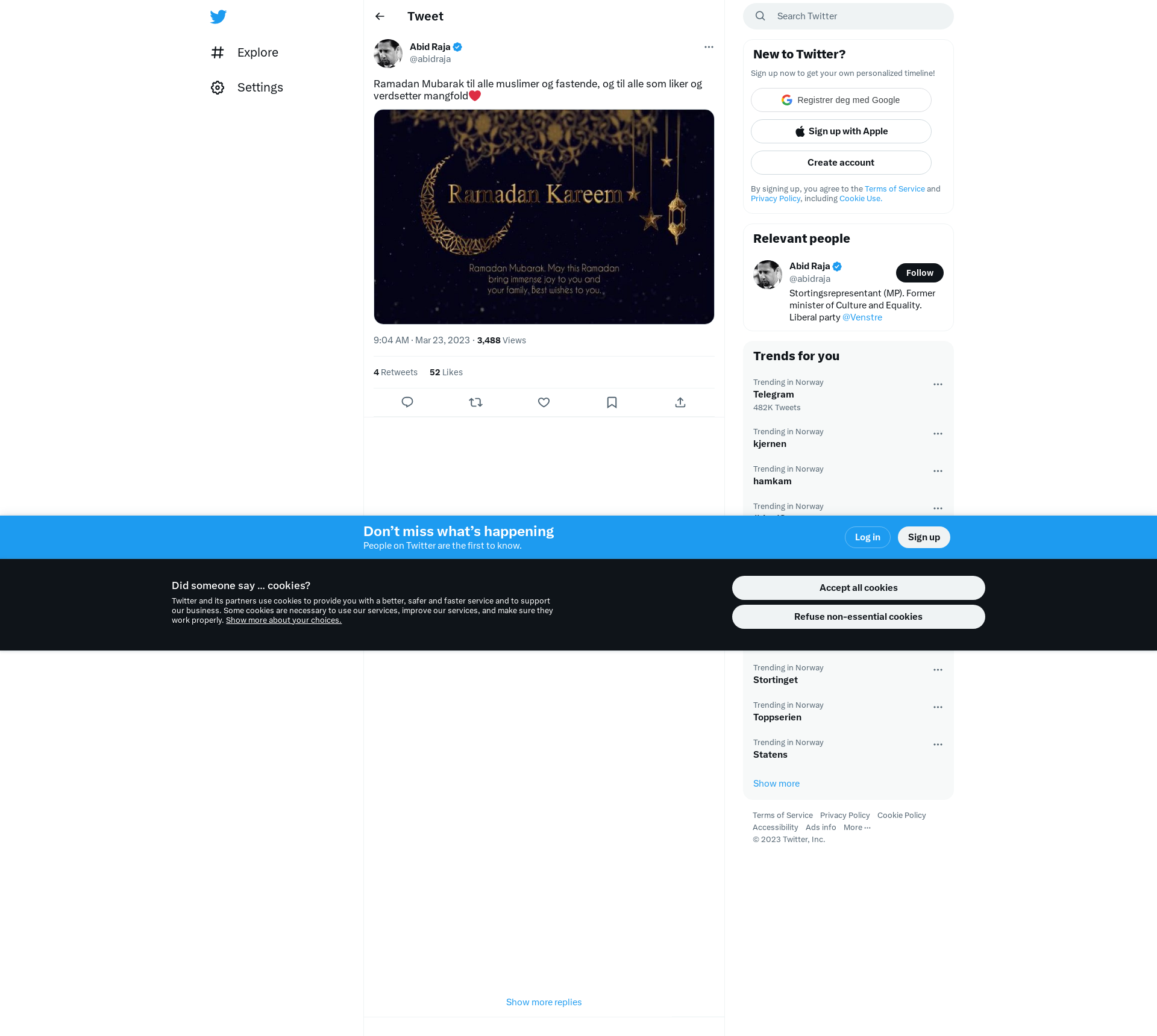 Ramadan Mubarak til alle muslimer og fastende, og til alle som liker og verdsetter mangfold❤️ https://t.co/44qpAik18h