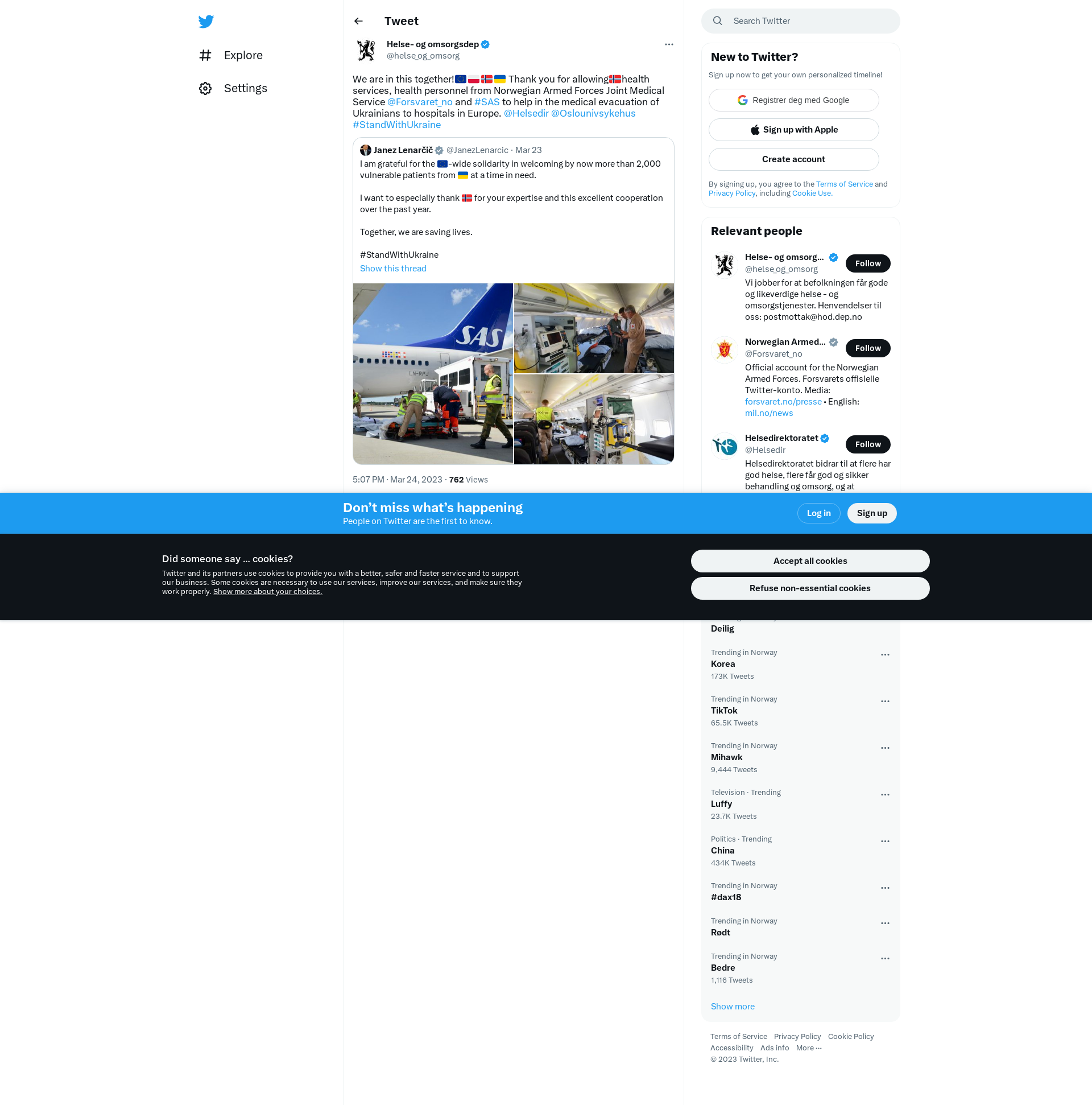 We are in this together!🇪🇺🇵🇱🇳🇴🇺🇦 Thank you for allowing🇳🇴health services, health personnel from Norwegian Armed Forces Joint Medical Service @Forsvaret_no and #SAS to help in the medical evacuation of Ukrainians to hospitals in Europe. @Helsedir @Oslounivsykehus #StandWithUkraine