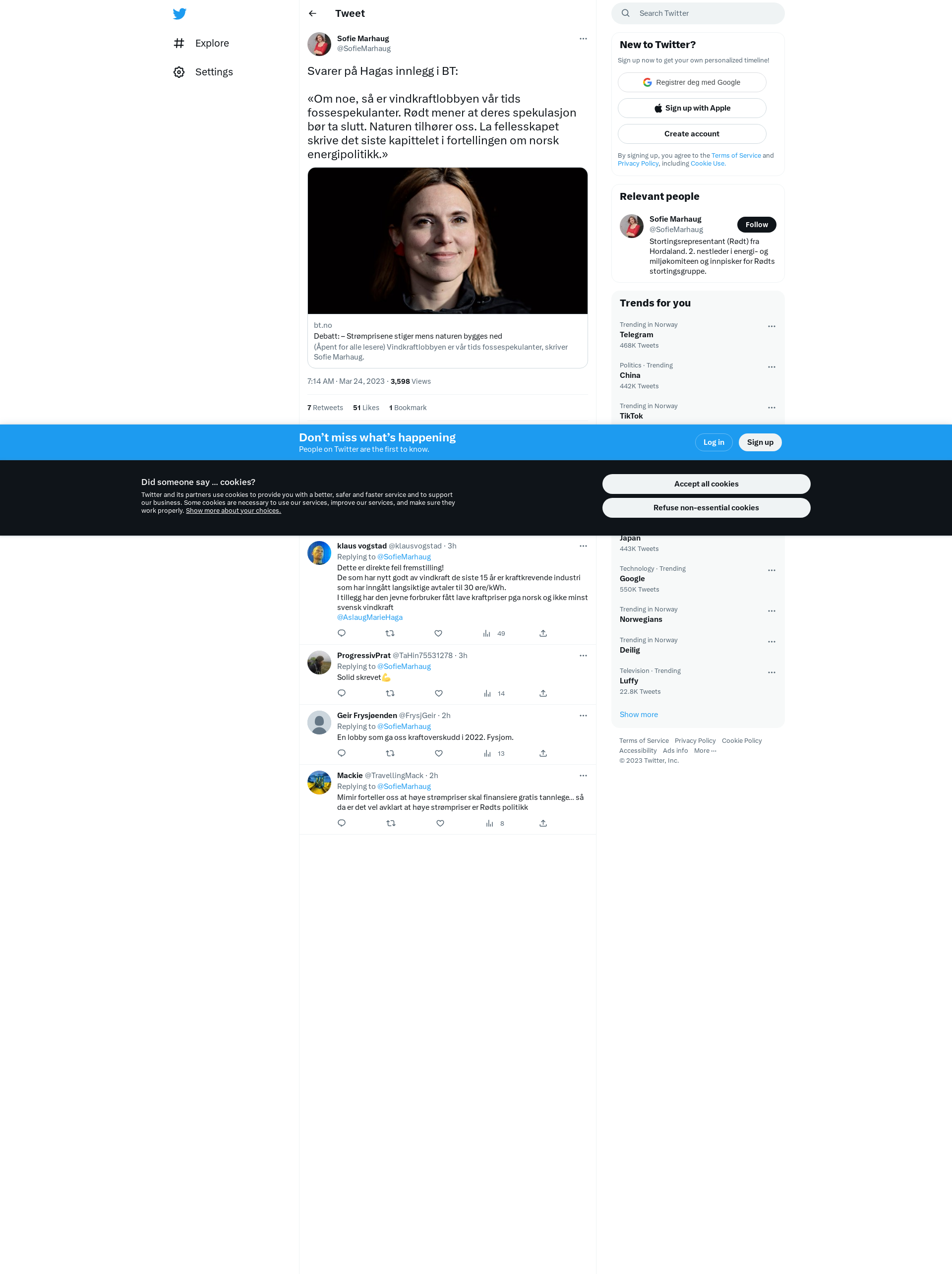 Svarer på Hagas innlegg i BT:\n\n«Om noe, så er vindkraftlobbyen vår tids fossespekulanter. Rødt mener at deres spekulasjon bør ta slutt. Naturen tilhører oss. La fellesskapet skrive det siste kapittelet i fortellingen om norsk energipolitikk.»\n\nhttps://t.co/UpzQ7q5Enh