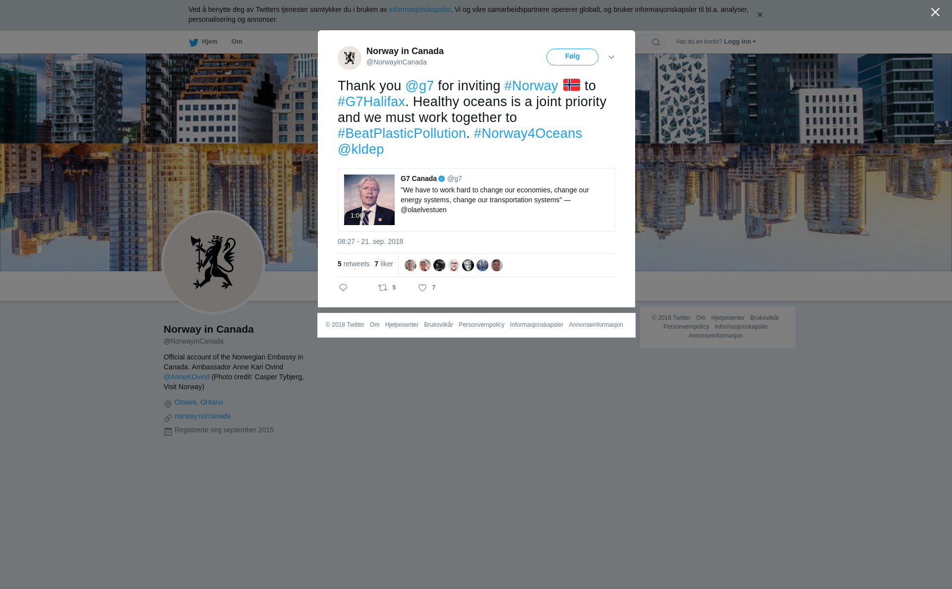 RT @NorwayinCanada: Thank you @g7 for inviting #Norway 🇳🇴 to #G7Halifax. Healthy oceans is a joint priority and we must work together to #BeatPlasticPollution. #Norway4Oceans @kldep https://t.co/1sB05l77kB