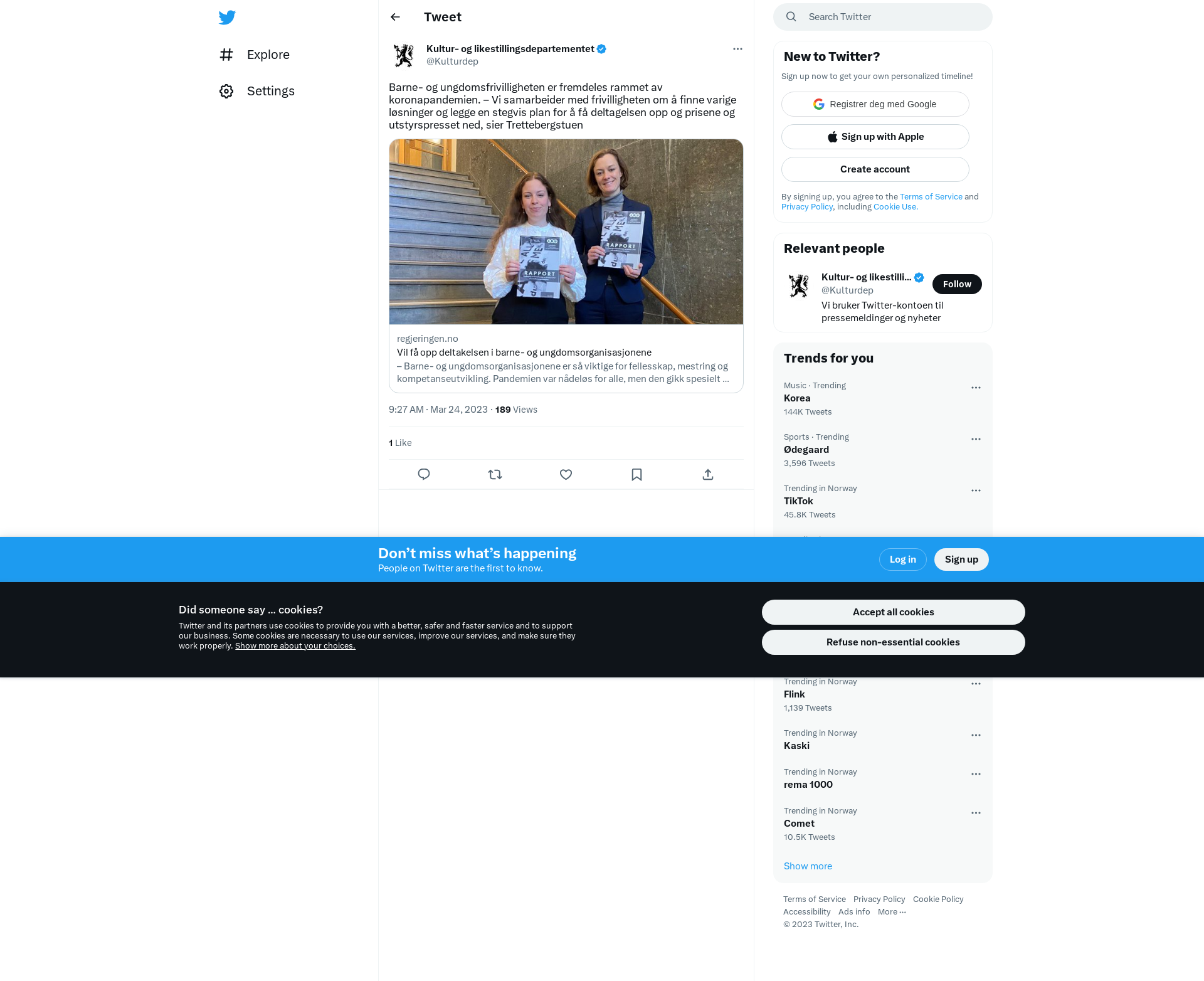 – Barne- og ungdomsorganisasjonene er så viktige for fellesskap, mestring og kompetanseutvikling. Pandemien var nådeløs for alle, men den gikk spesielt hardt ut over barn og unges muligheter til å treffes og ha en meningsfull hverdag, sier kultur- og l...