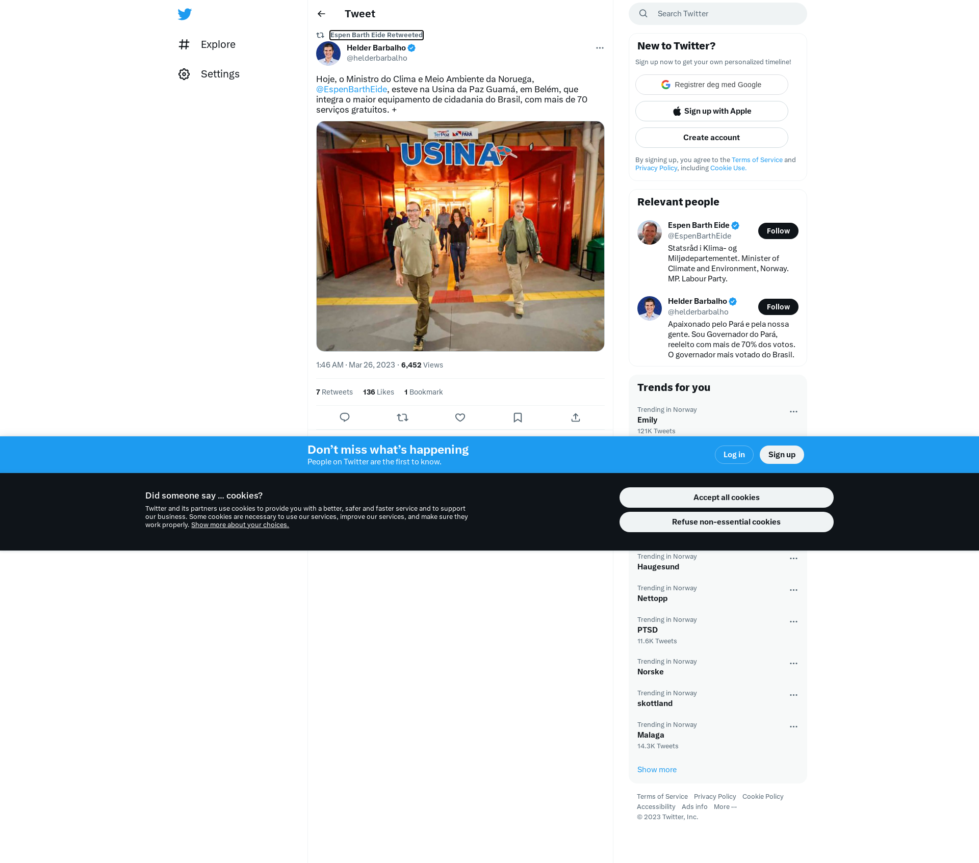 RT @helderbarbalho: Hoje, o Ministro do Clima e Meio Ambiente da Noruega, @EspenBarthEide, esteve na Usina da Paz Guamá, em Belém, que integra o maior equipamento de cidadania do Brasil, com mais de 70 serviços gratuitos. + https://t.co/DZyCeOs1Y7