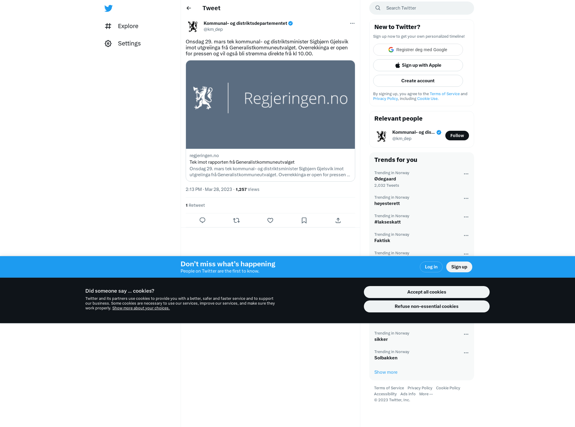 Onsdag 29. mars tek kommunal- og distriktsminister Sigbjørn Gjelsvik imot utgreiinga frå Generalistkommuneutvalget. Overrekkinga er open for pressen og vil også bli strømma direkte frå kl 10.00. https://t.co/qm8ImYrHmw