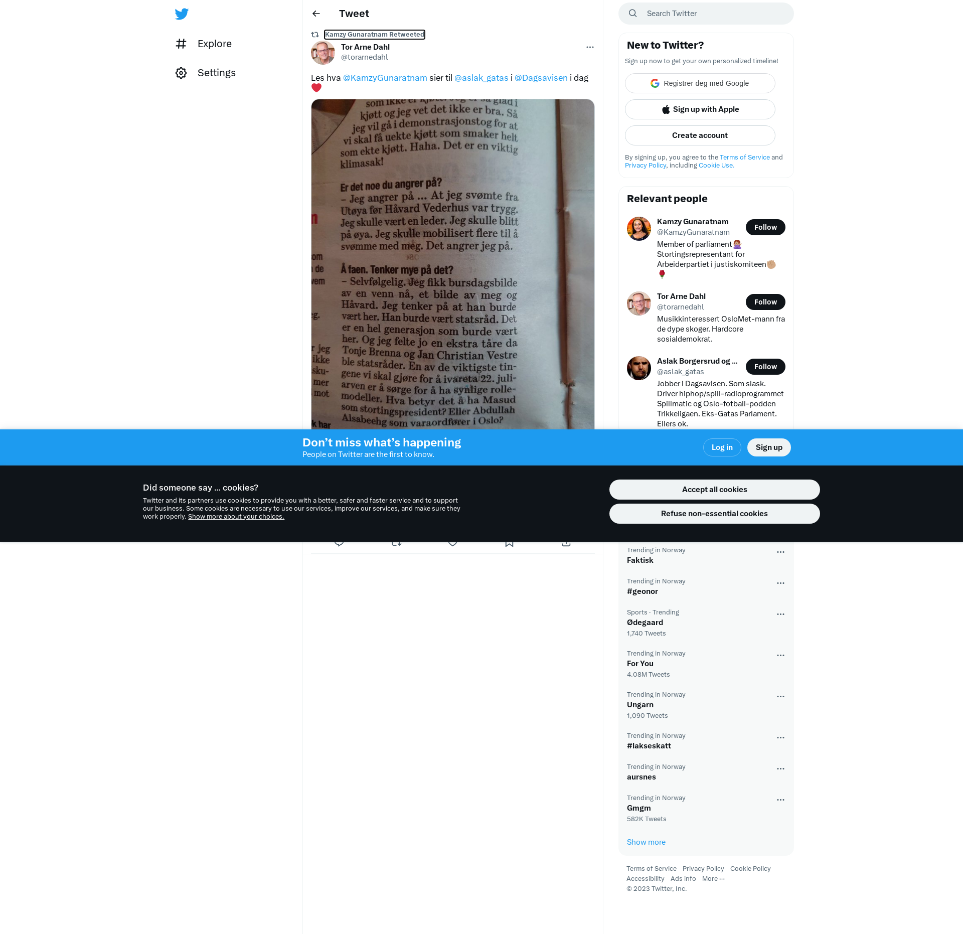 RT @torarnedahl: Les hva @KamzyGunaratnam sier til @aslak_gatas i @Dagsavisen i dag ❤️ https://t.co/FieJuyOuIx