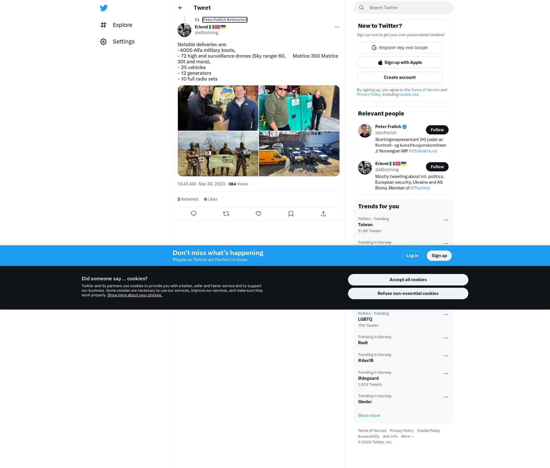 RT @eDrotning: Notable deliveries are: \n-4000 Alfa military boots, \n- 72 high end surveillance drones (Sky ranger 60, Matrice 300 Mat…