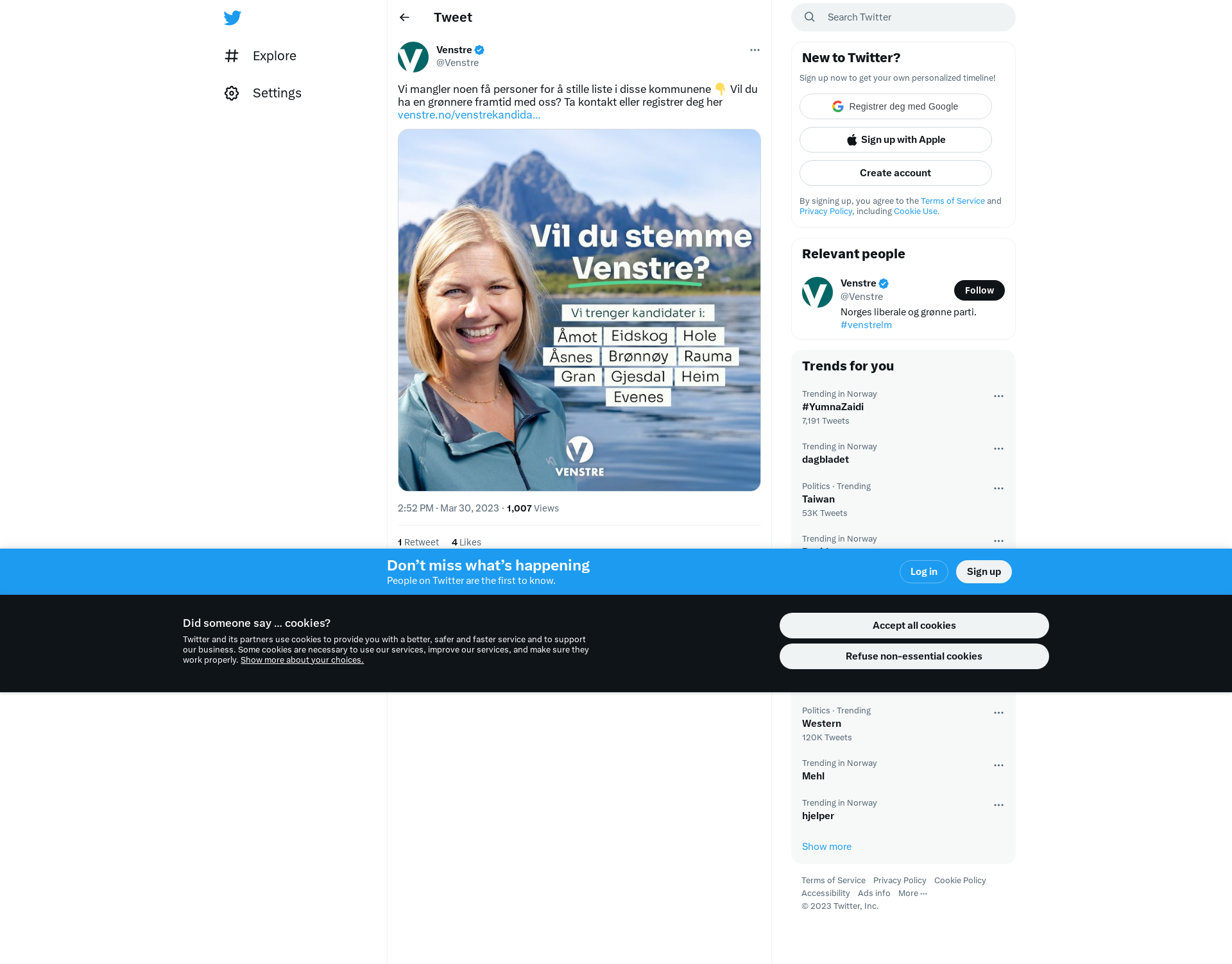 Vi mangler noen få personer for å stille liste i disse kommunene 👇 Vil du ha en grønnere framtid med oss? Ta kontakt eller registrer deg her https://t.co/yVNgVQEX92 https://t.co/TGxivn7gvG