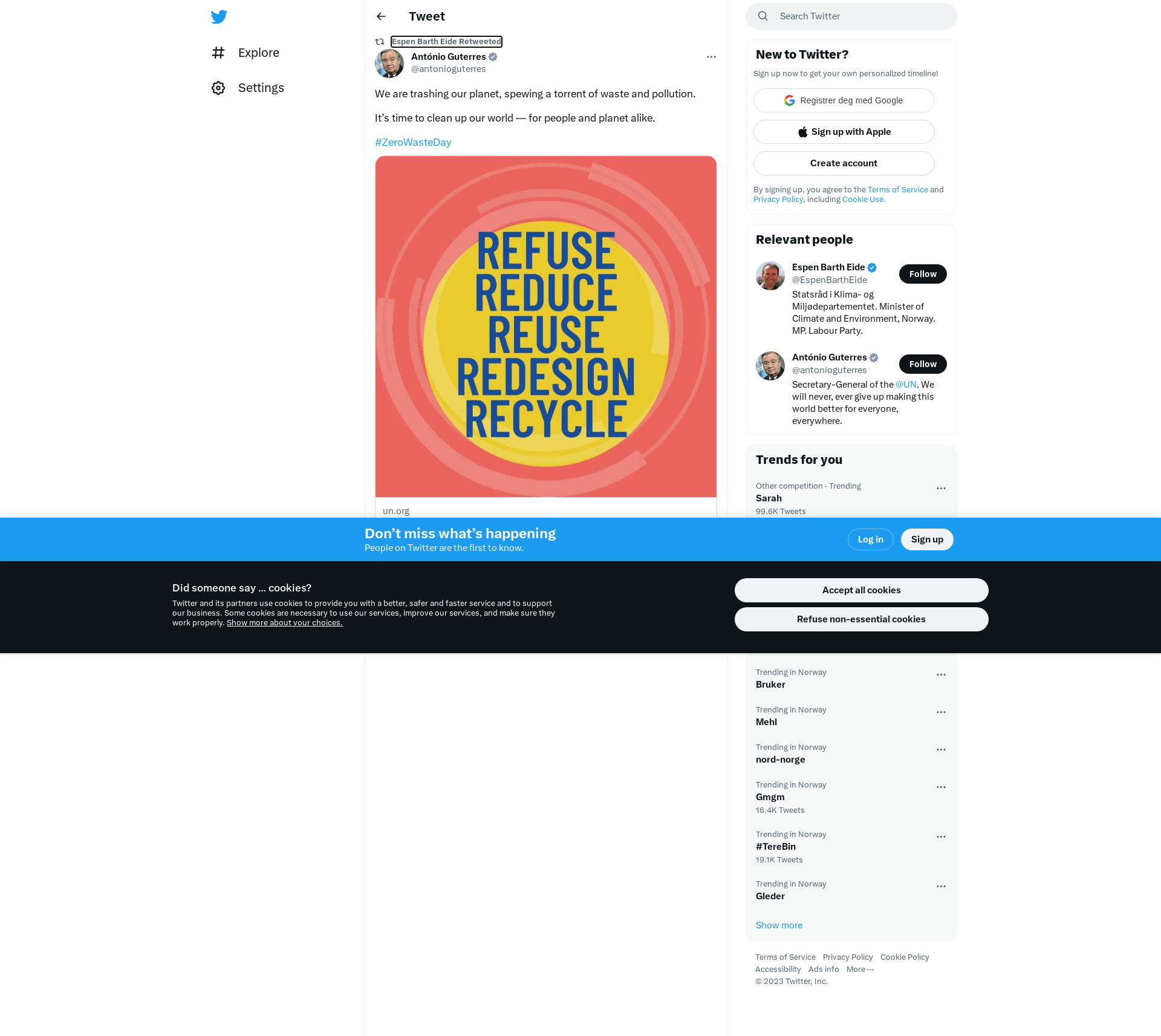RT @antonioguterres: We are trashing our planet, spewing a torrent of waste and pollution.\n\nIt’s time to clean up our world — for people an…