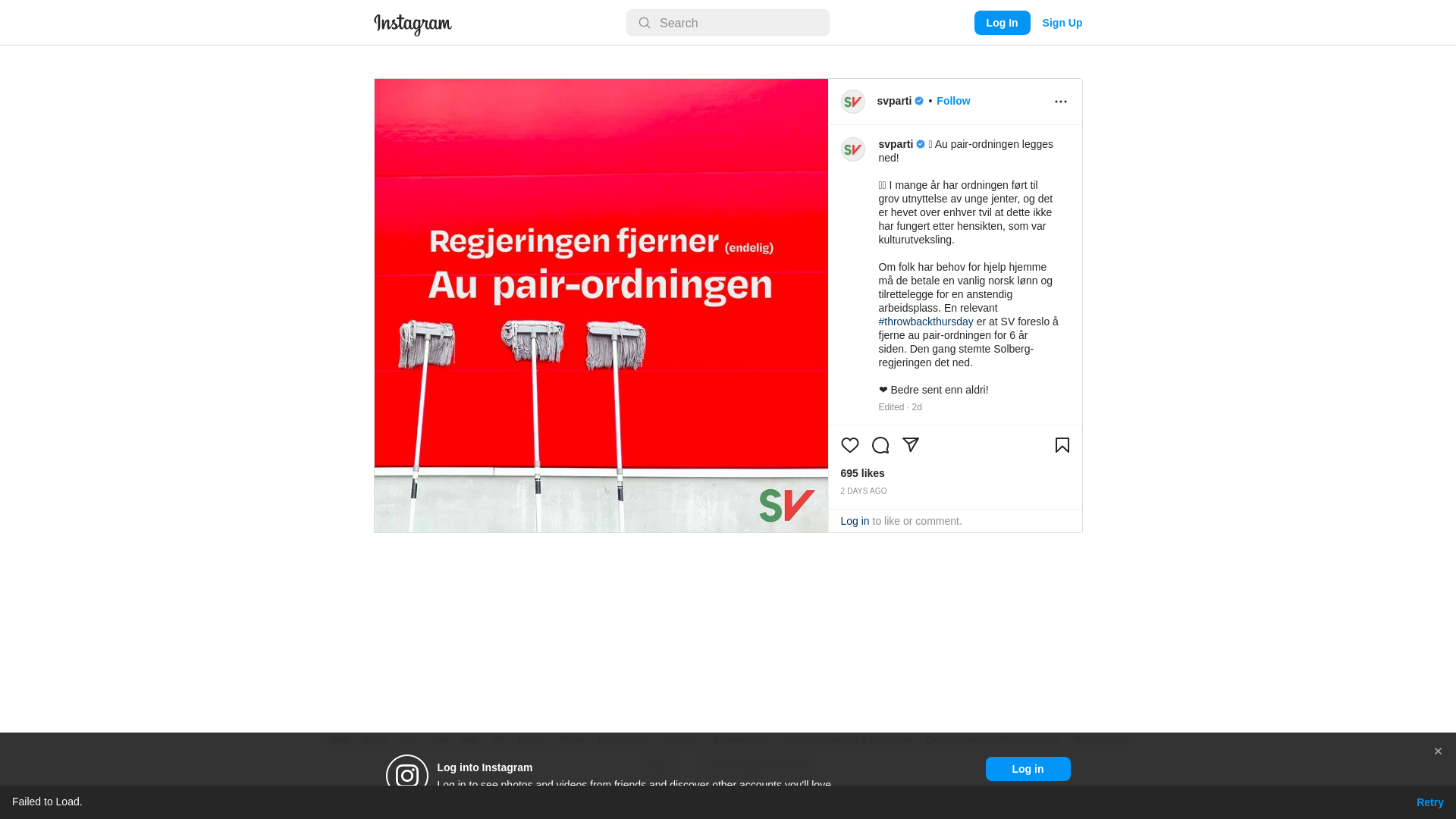 🧹 Au pair-ordningen legges ned!\n\n👩🏻 I mange år har ordningen ført til grov utnyttelse av unge jenter, og det er hevet over enhver tvil at dette ikke har fungert etter hensikten, som var kulturutveksling.\n\nOm folk har behov for hjelp hjemme må de betale en vanlig norsk lønn og tilrettelegge for en anstendig arbeidsplass. En relevant #throwbackthursday er at SV foreslo å fjerne au pair-ordningen for 6 år siden. Den gang stemte Solberg-regjeringen det ned.\n\n❤ Bedre sent enn aldri!