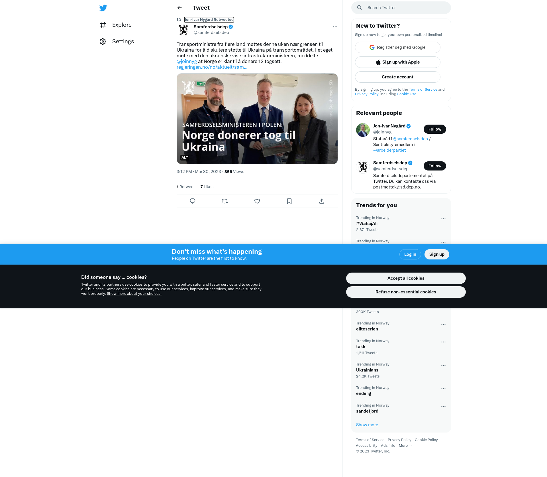 RT @samferdselsdep: Transportministre fra flere land møttes denne uken nær grensen til Ukraina for å diskutere støtte til Ukraina på transportområdet. I et eget møte med den ukrainske vise-infrastrukturministeren, meddelte @joinnyg at Norge er klar til å donere 12 togsett.\nhttps://t.co/v4QxhJfIbn https://t.co/gGsJeMBSks