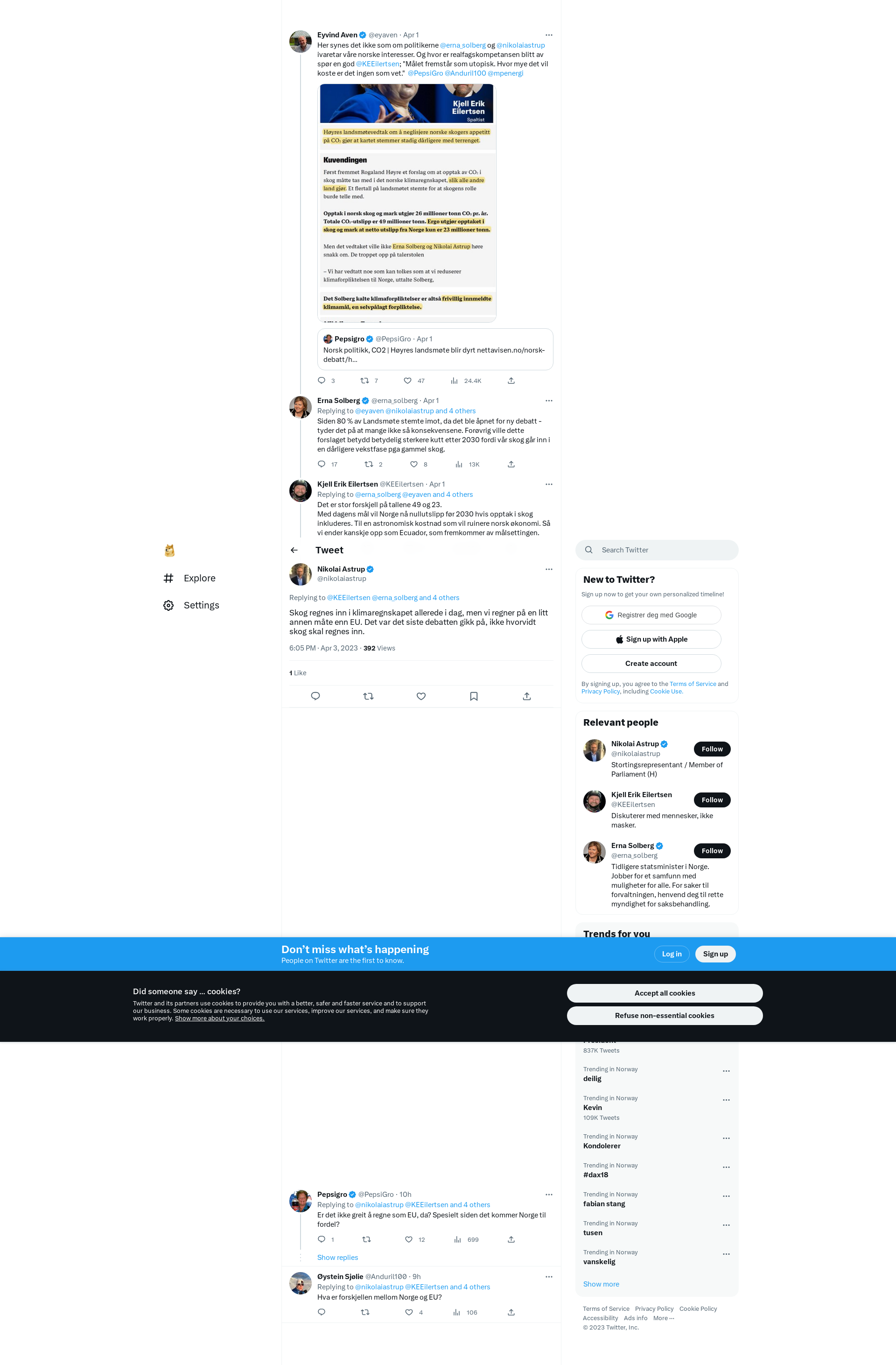 @KEEilertsen @erna_solberg @eyaven @PepsiGro @Anduril100 @mpenergi Skog regnes inn i klimaregnskapet allerede i dag, men vi regner på en litt annen måte enn EU. Det var det siste debatten gikk på, ikke hvorvidt skog skal regnes inn.