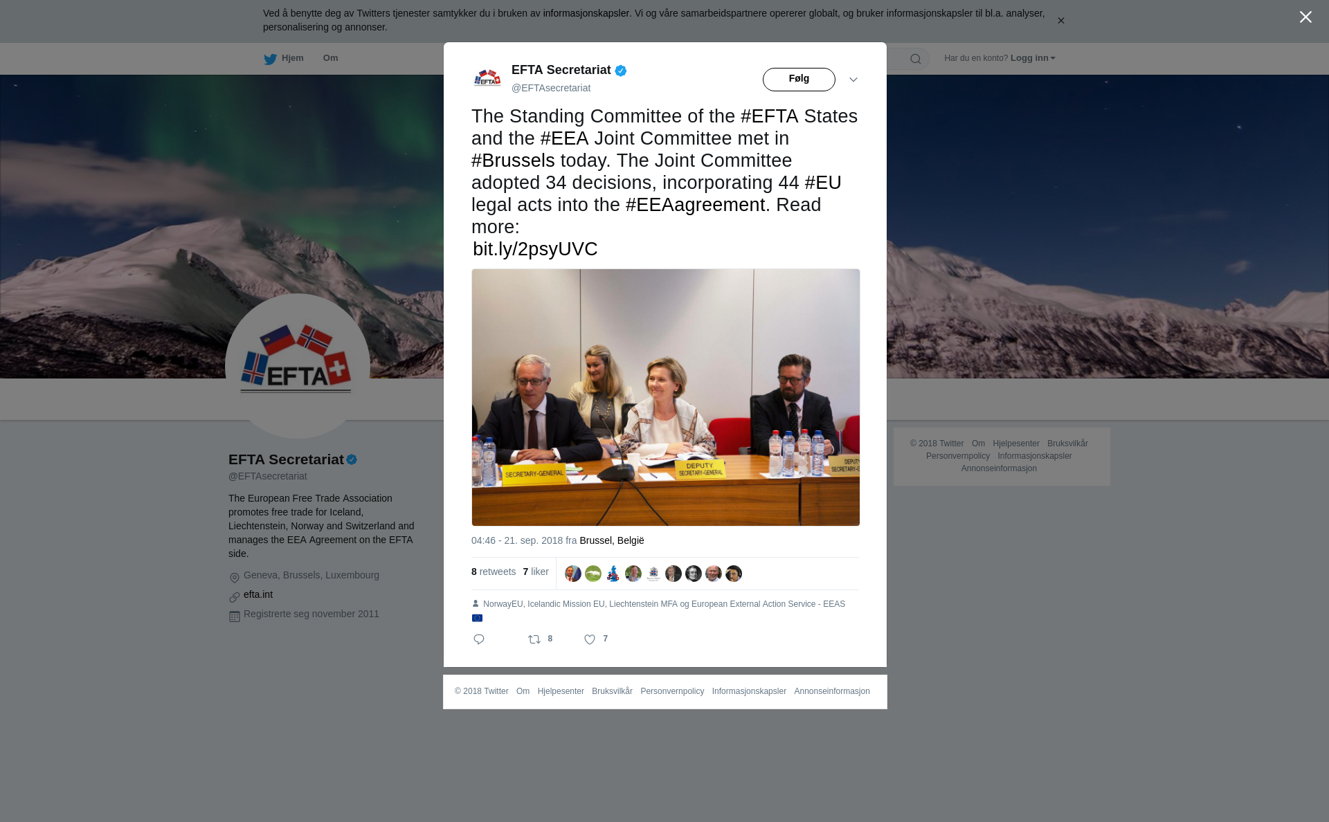 RT @EFTAsecretariat: The Standing Committee of the #EFTA States and the #EEA Joint Committee met in #Brussels today. The Joint Committee adopted 34 decisions, incorporating 44 #EU legal acts into the #EEAagreement. Read more: