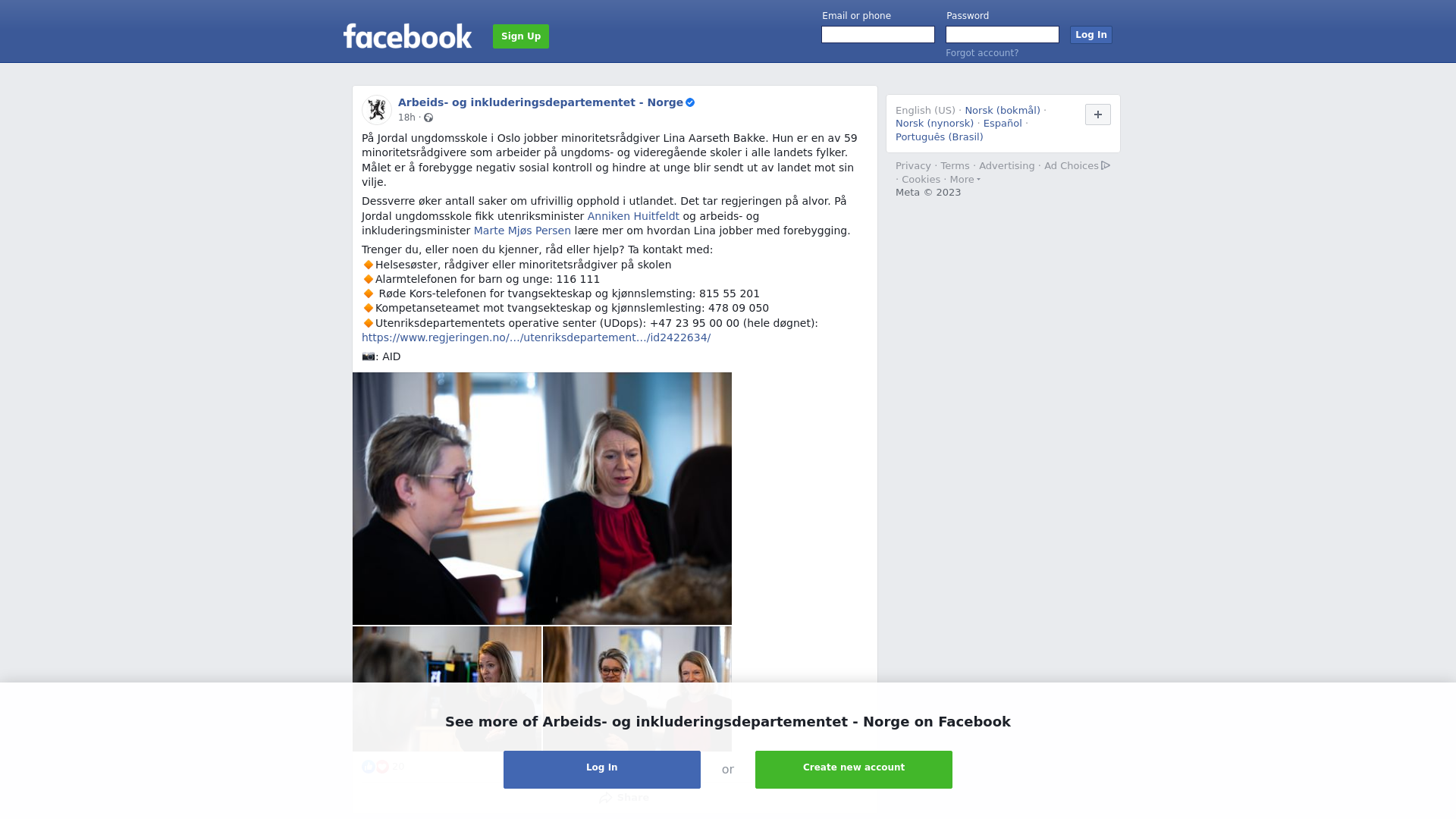 På Jordal ungdomsskole i Oslo jobber minoritetsrådgiver Lina Aarseth Bakke. Hun er en av 59 minoritetsrådgivere som arbeider på ungdoms- og videregående skoler i alle landets fylker. Målet er å forebygge negativ sosial kontroll og hindre at unge blir sendt ut av landet mot sin vilje. \n\nDessverre øker antall saker om ufrivillig opphold i utlandet. Det tar regjeringen på alvor. På Jordal ungdomsskole fikk utenriksminister Anniken Huitfeldt og arbeids- og inkluderingsminister Marte Mjøs Persen lære mer om hvordan Lina jobber med forebygging.\n\nTrenger du, eller noen du kjenner, råd eller hjelp? Ta kontakt med: \n🔸Helsesøster, rådgiver eller minoritetsrådgiver på skolen\n🔸Alarmtelefonen for barn og unge: 116 111\n🔸 Røde Kors-telefonen for tvangsekteskap og kjønnslemsting: 815 55 201\n🔸Kompetanseteamet mot tvangsekteskap og kjønnslemlesting: 478 09 050\n🔸Utenriksdepartementets operative senter (UDops): +47 23 95 00 00 (hele døgnet): https://www.regjeringen.no/no/tema/utenrikssaker/reiseinformasjon/static/utenriksdepartementets-operative-senter/id2422634/ \n\n📸: AID
