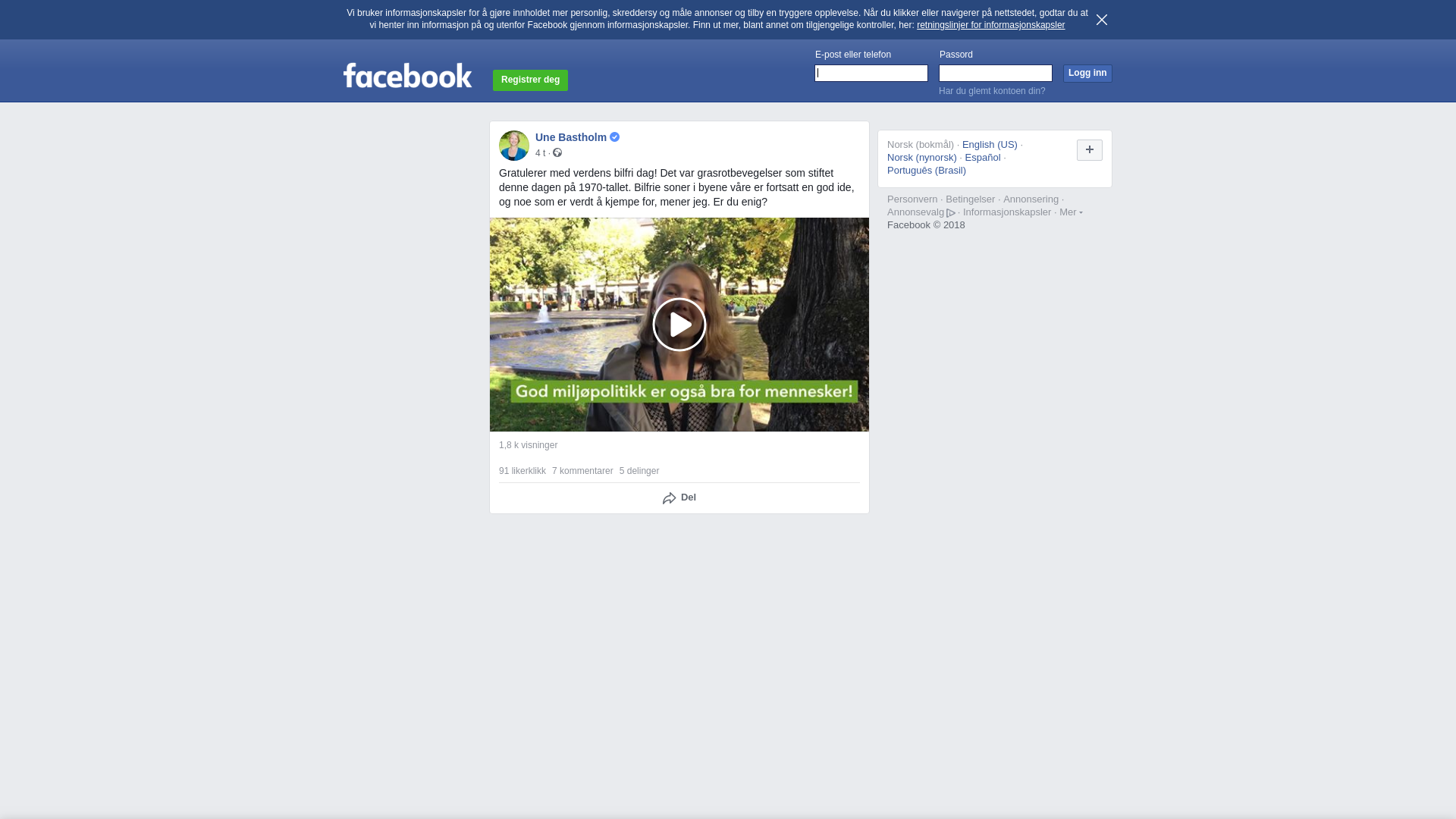 Orginalt innlegg på Facebook