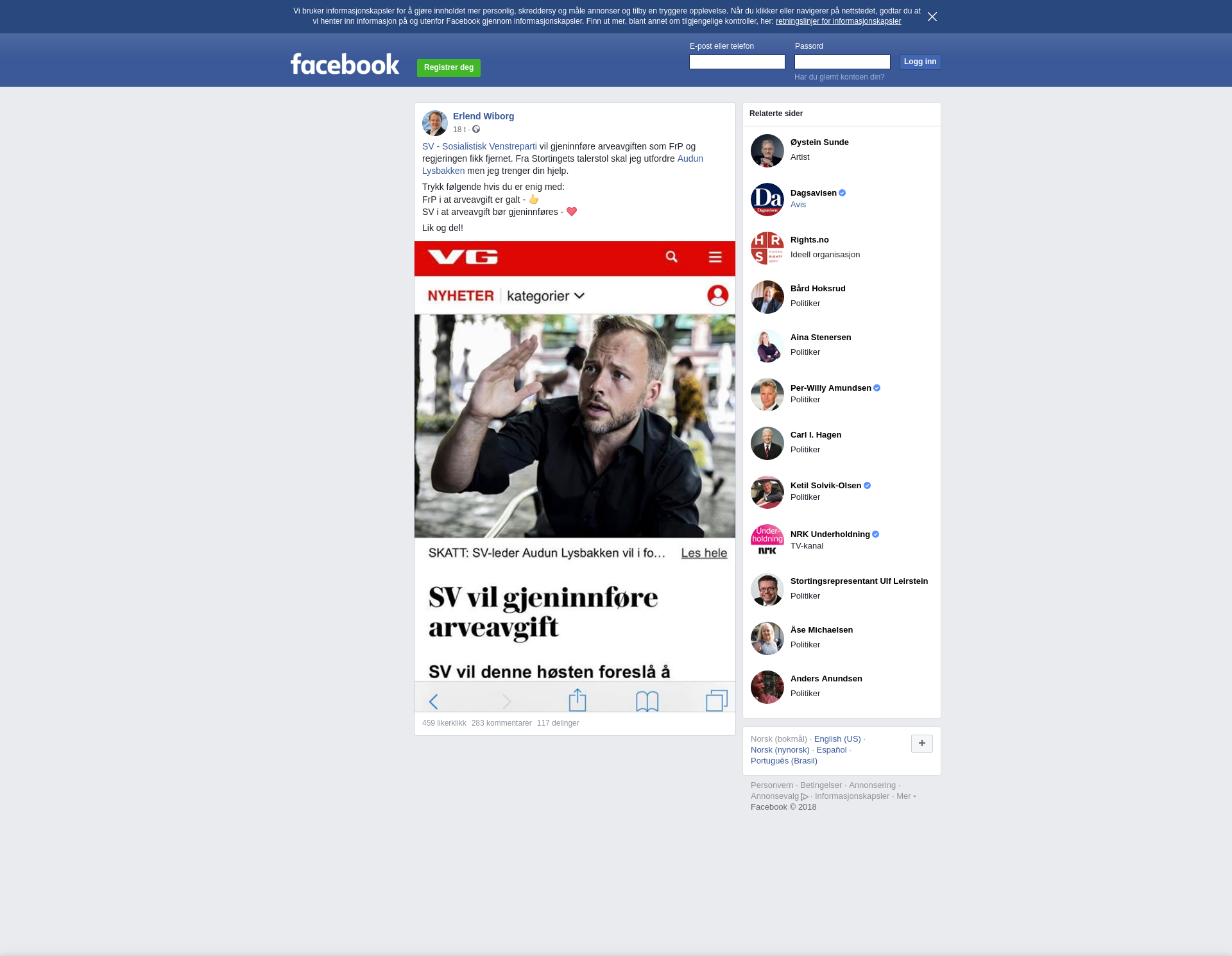 SV i at arveavgift bør gjeninnføres - ❤️