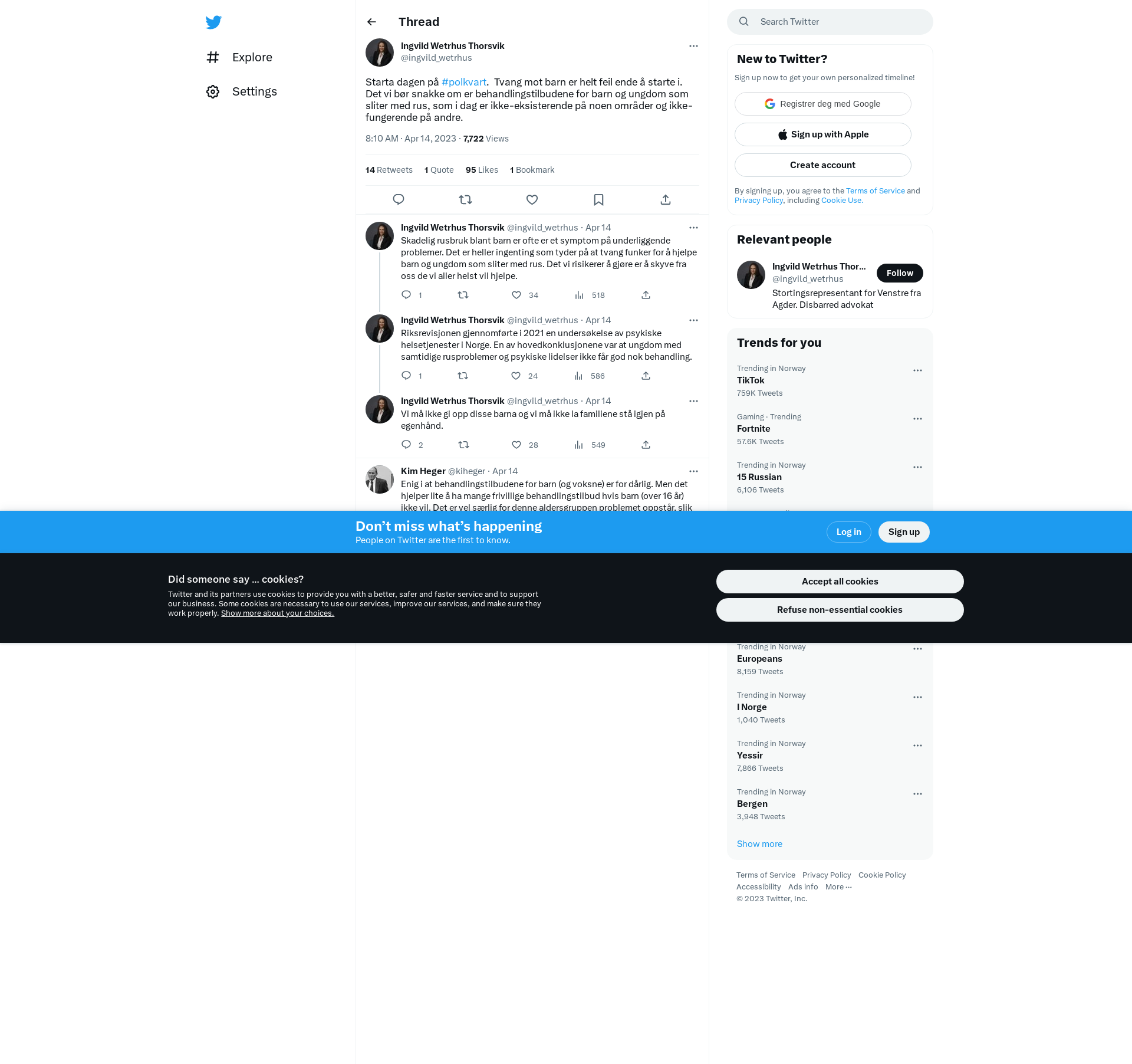 Starta dagen på #polkvart. Tvang mot barn er helt feil ende å starte i. Det vi bør snakke om er behandlingstilbudene for barn og ungdom som sliter med rus, som i dag er ikke-eksisterende på noen områder og ikke-fungerende på andre.