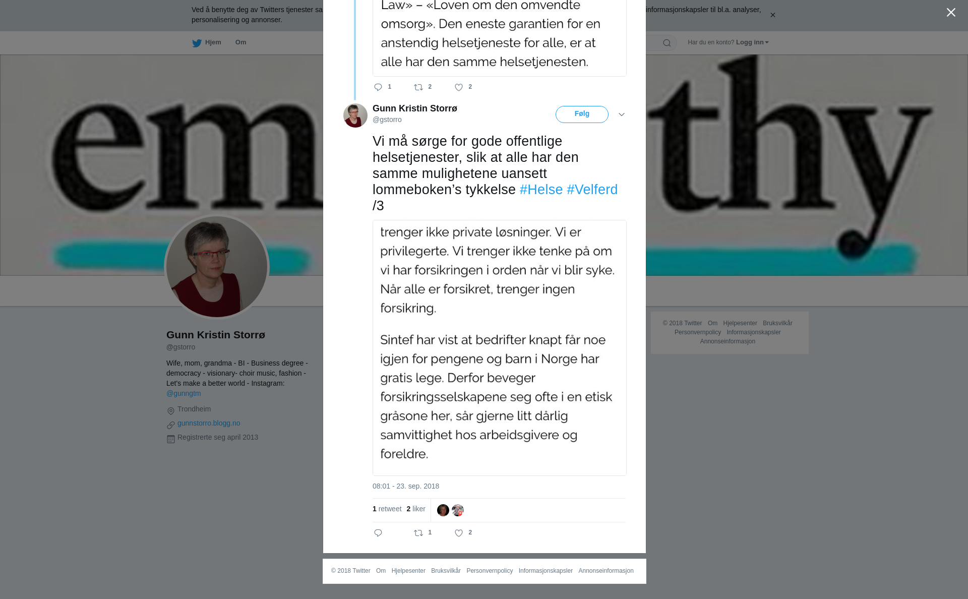 RT @gstorro: Vi må sørge for gode offentlige helsetjenester, slik at alle har den samme mulighetene uansett lommeboken’s tykkelse #Helse #Velferd /3 https://t.co/YhRv5wn7en