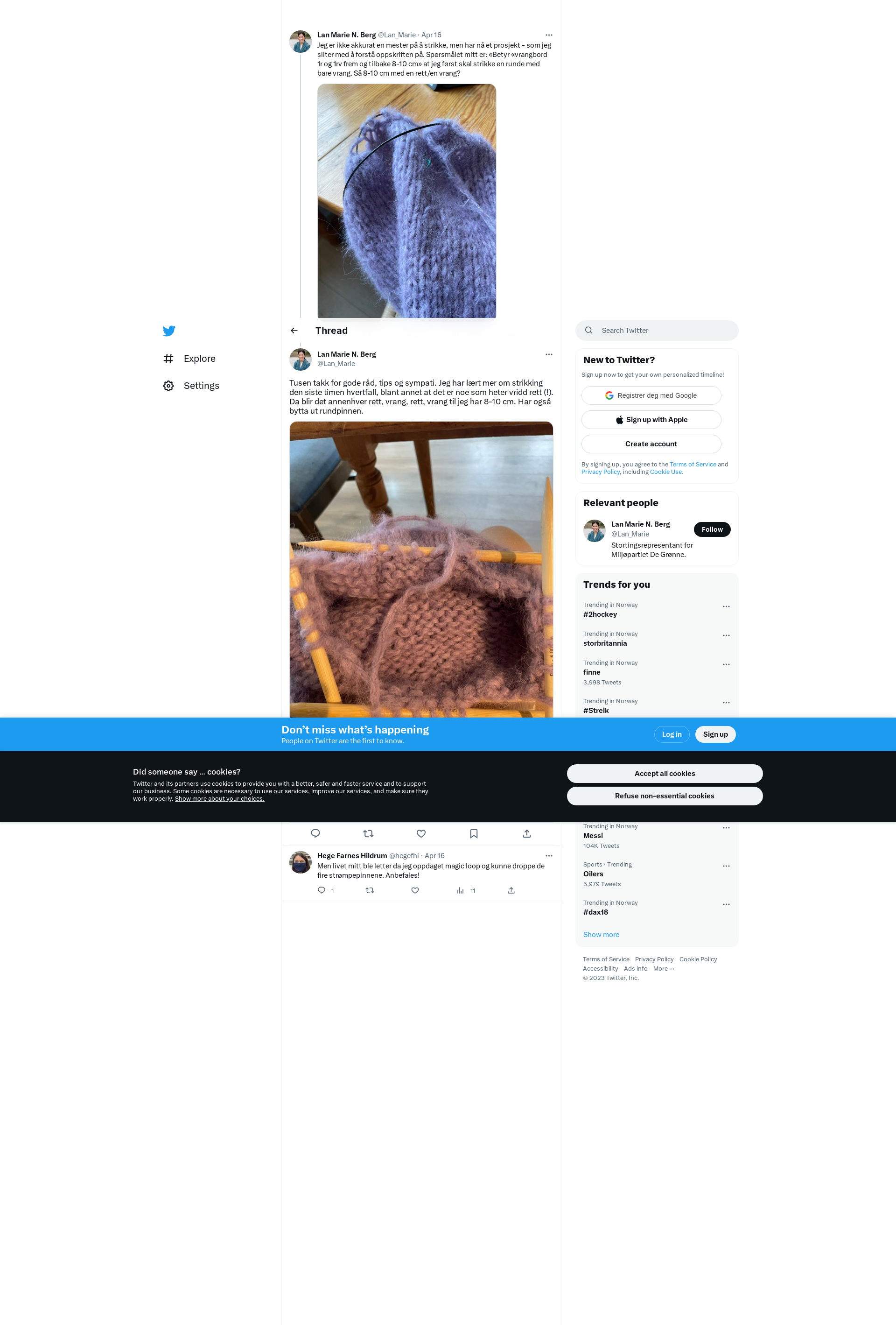 Tusen takk for gode råd, tips og sympati. Jeg har lært mer om strikking den siste timen hvertfall, blant annet at det er noe som heter vridd rett (!). Da blir det annenhver rett, vrang, rett, vrang til jeg har 8-10 cm. Har også bytta ut rundpinnen. https://t.co/suB5kS7nF8