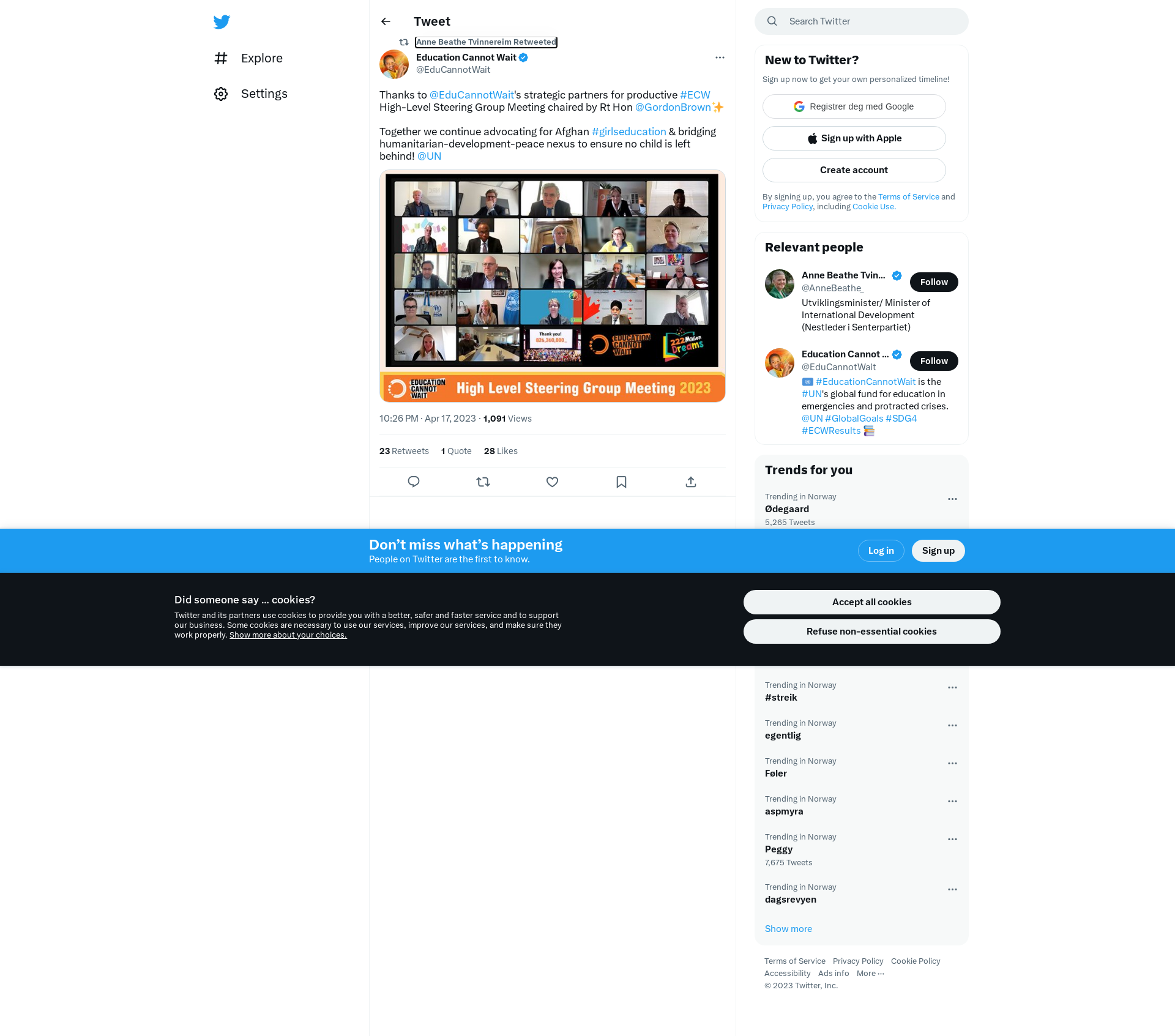 RT @EduCannotWait: Thanks to @EduCannotWait's strategic partners for productive #ECW High-Level Steering Group Meeting chaired by Rt Hon @GordonBrown✨\n\nTogether we continue advocating for Afghan #girlseducation & bridging humanitarian-development-peace nexus to ensure no child is left behind! @UN https://t.co/evaTt0ms8m
