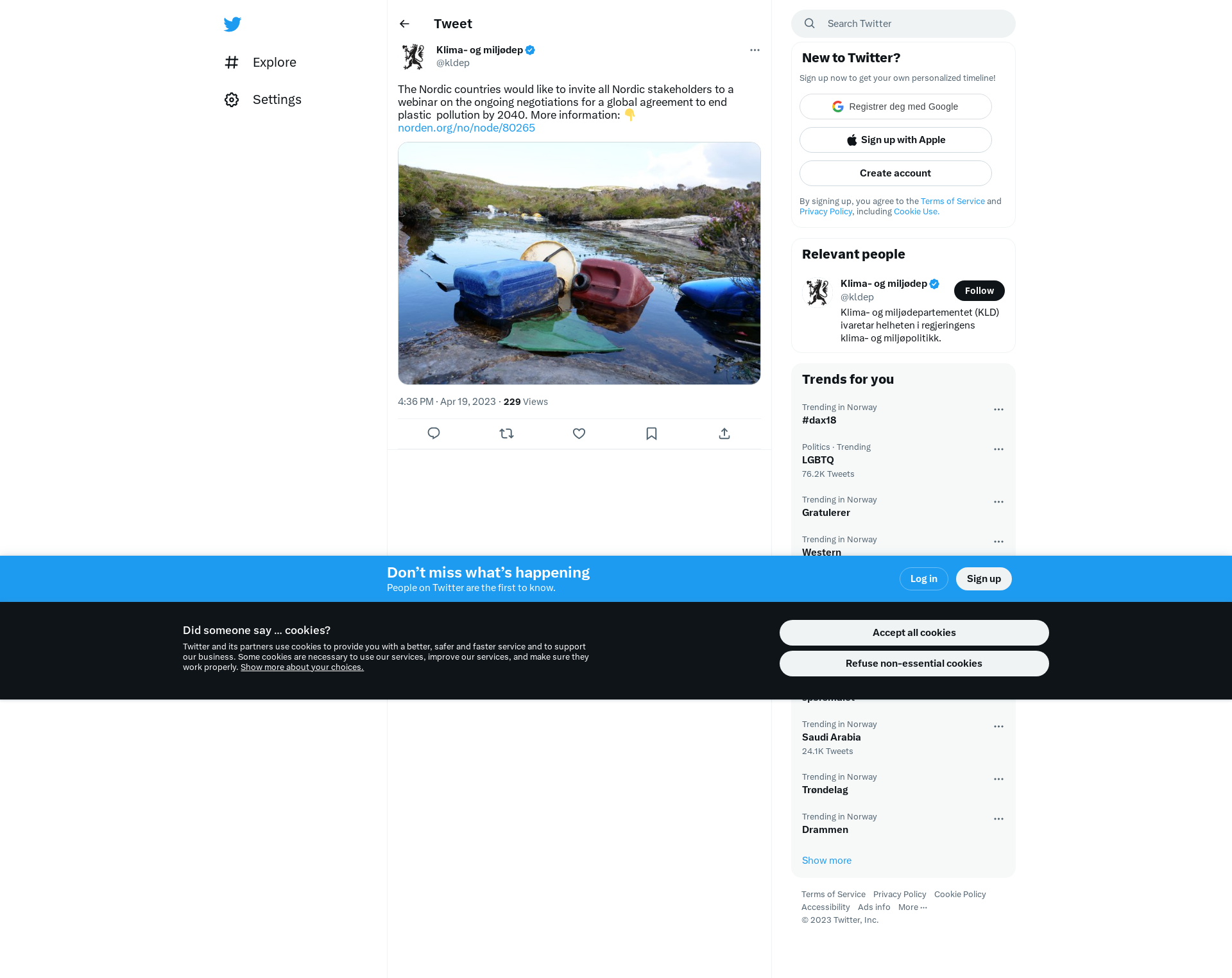The Nordic countries would like to invite all Nordic stakeholders to a webinar on the ongoing negotiations for a global agreement to end plastic pollution by 2040. More information: 👇\nhttps://t.co/hlJArQv1I6 https://t.co/NDcfBmODWk