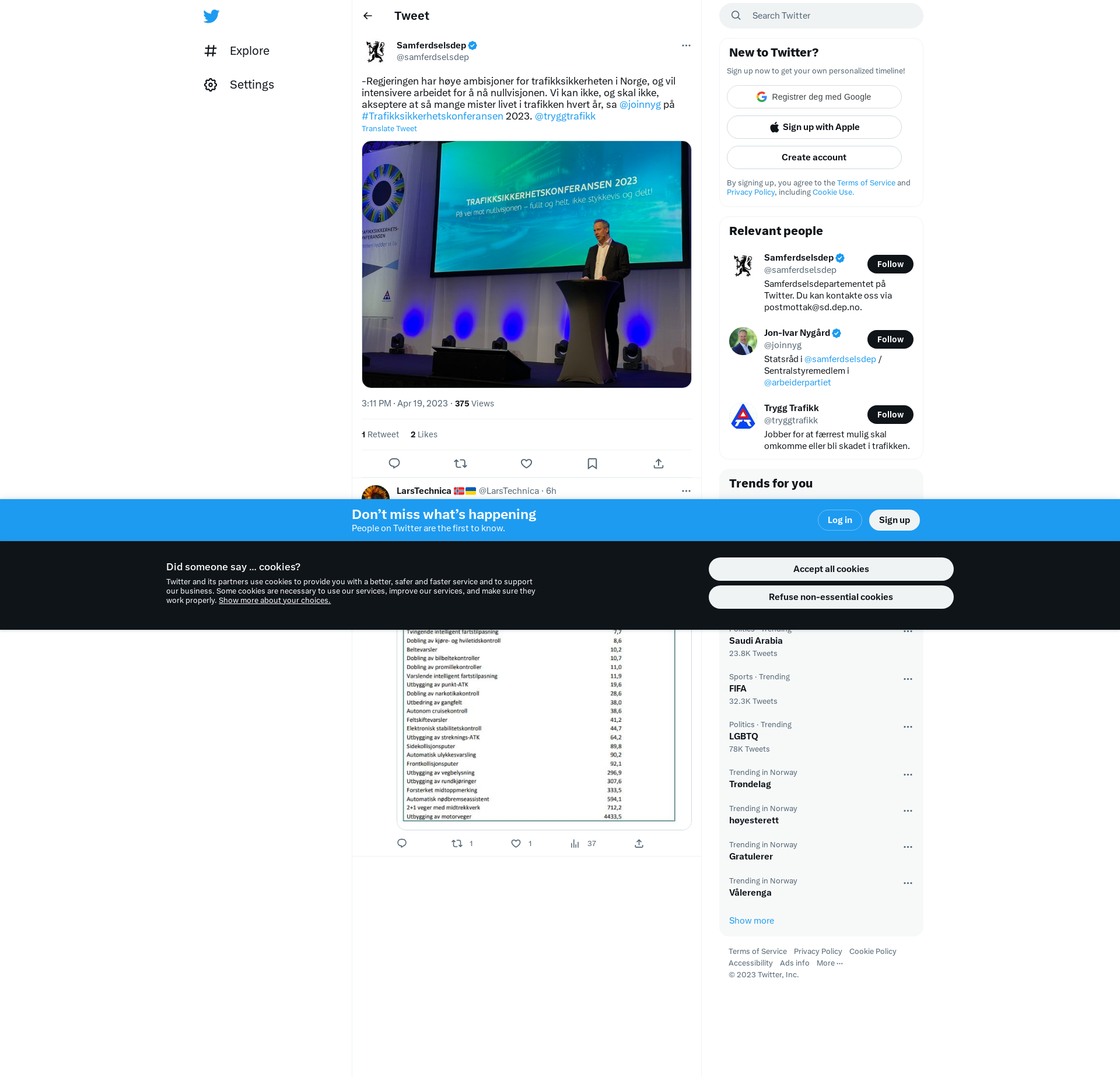 -Regjeringen har høye ambisjoner for trafikksikkerheten i Norge, og vil intensivere arbeidet for å nå nullvisjonen. Vi kan ikke, og skal ikke, akseptere at så mange mister livet i trafikken hvert år, sa @joinnyg på #Trafikksikkerhetskonferansen 2023. @tryggtrafikk https://t.co/u9hThKBYkG