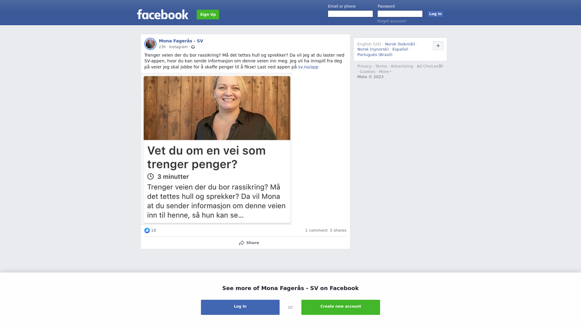 Trenger veien der du bor rassikring? Må det tettes hull og sprekker? Da vil jeg at du laster ned SV-appen, hvor du kan sende informasjon om denne veien inn meg. Jeg vil ha innspill fra deg på veier jeg skal jobbe for å skaffe penger til å fikse! Last ned appen på sv.no/app