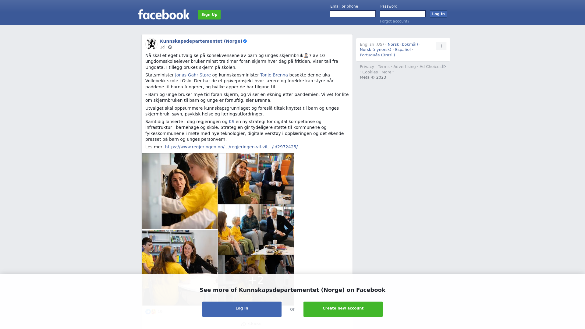 Nå skal et eget utvalg se på konsekvensene av barn og unges skjermbruk🧑🏻💻7 av 10 ungdomsskoleelevene bruker minst tre timer foran skjerm hver dag på fritiden, viser tall fra Ungdata. I tillegg brukes skjerm på skolen.\n\nStatsminister Jonas Gahr Støre og kunnskapsminister Tonje Brenna besøkte denne uka Vollebekk skole i Oslo. Der har de et prøveprosjekt hvor lærere og foreldre kan styre når paddene til barna fungerer, og hvilke apper de har tilgang til. \n\n- Barn og unge bruker mye tid foran skjerm, og vi ser en økning etter pandemien. Vi vet for lite om skjermbruken til barn og unge er fornuftig, sier Brenna.\n\nUtvalget skal oppsummere kunnskapsgrunnlaget og foreslå tiltak knyttet til barn og unges skjermbruk, søvn, psykisk helse og læringsutfordringer. \n\nSamtidig lanserte i dag regjeringen og KS en ny strategi for digital kompetanse og infrastruktur i barnehage og skole. Strategien gir tydeligere støtte til kommunene og fylkeskommunene i møte med nye teknologier, digitale verktøy i opplæringen og det økende presset på barn og unges personvern. \n\nLes mer: https://www.regjeringen.no/no/aktuelt/regjeringen-vil-vite-mer-om-konsekvensene-av-barns-skjermbruk/id2972425/