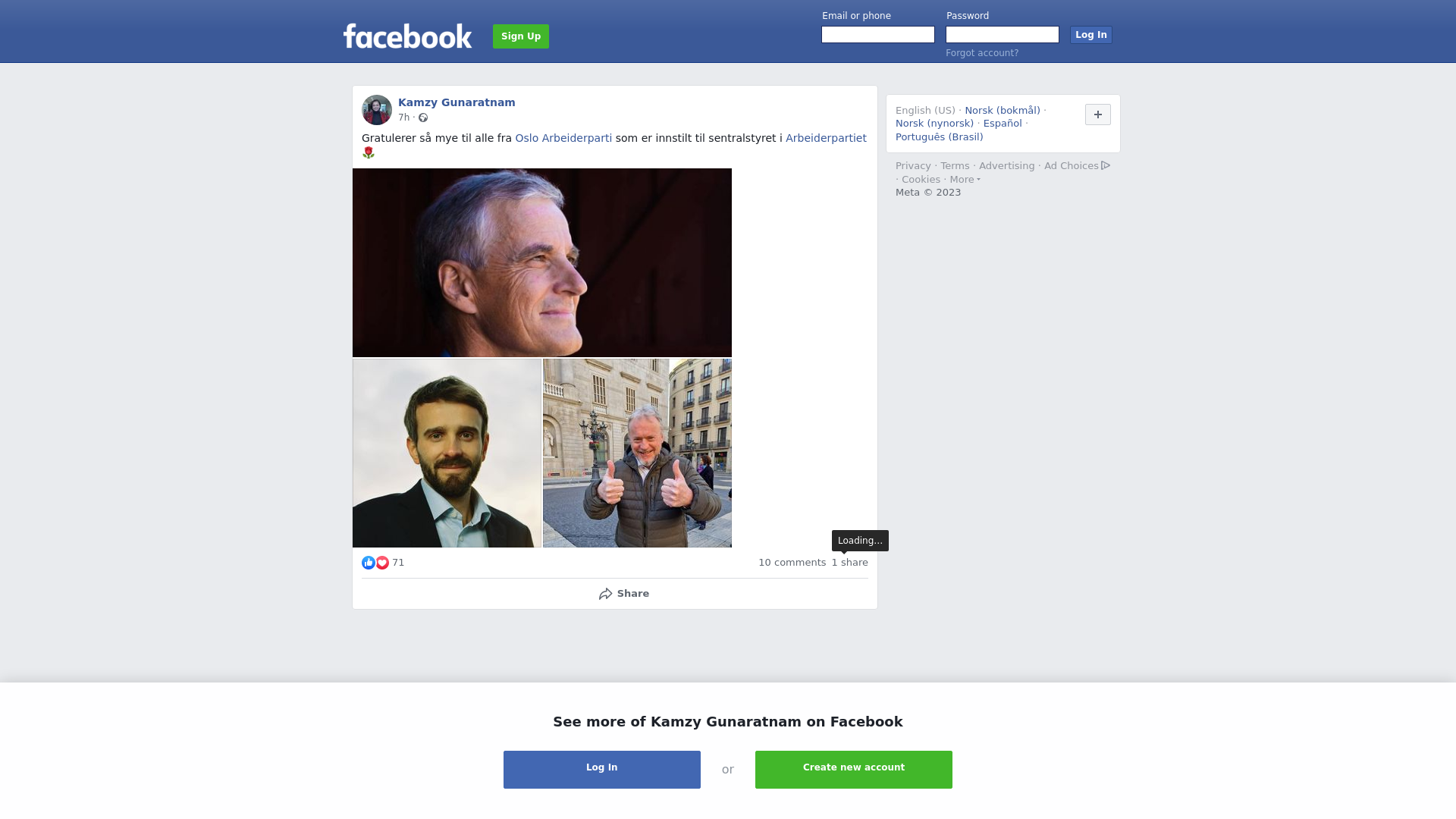 Orginalt innlegg på Facebook