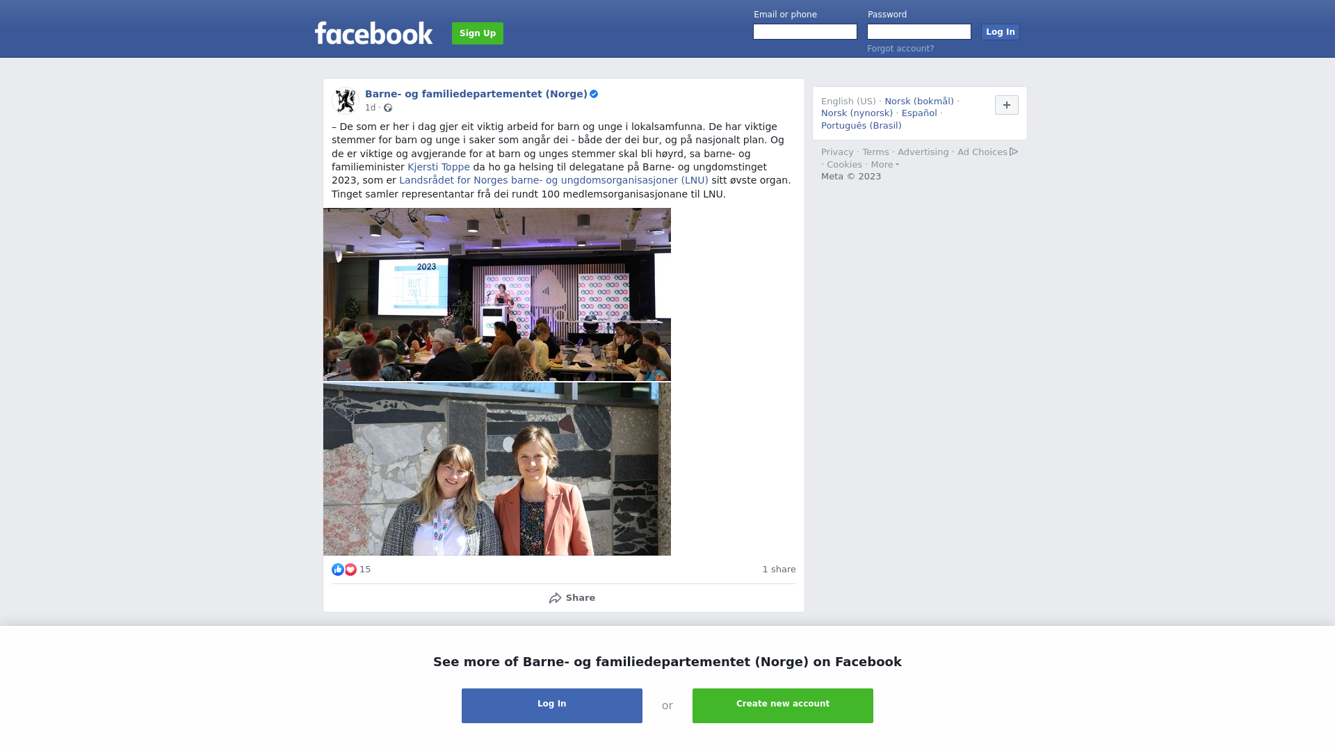 – De som er her i dag gjer eit viktig arbeid for barn og unge i lokalsamfunna. De har viktige stemmer for barn og unge i saker som angår dei - både der dei bur, og på nasjonalt plan. Og de er viktige og avgjerande for at barn og unges stemmer skal bli høyrd, sa barne- og familieminister Kjersti Toppe da ho ga helsing til delegatane på Barne- og ungdomstinget 2023, som er Landsrådet for Norges barne- og ungdomsorganisasjoner (LNU) sitt øvste organ. Tinget samler representantar frå dei rundt 100 medlemsorganisasjonane til LNU.