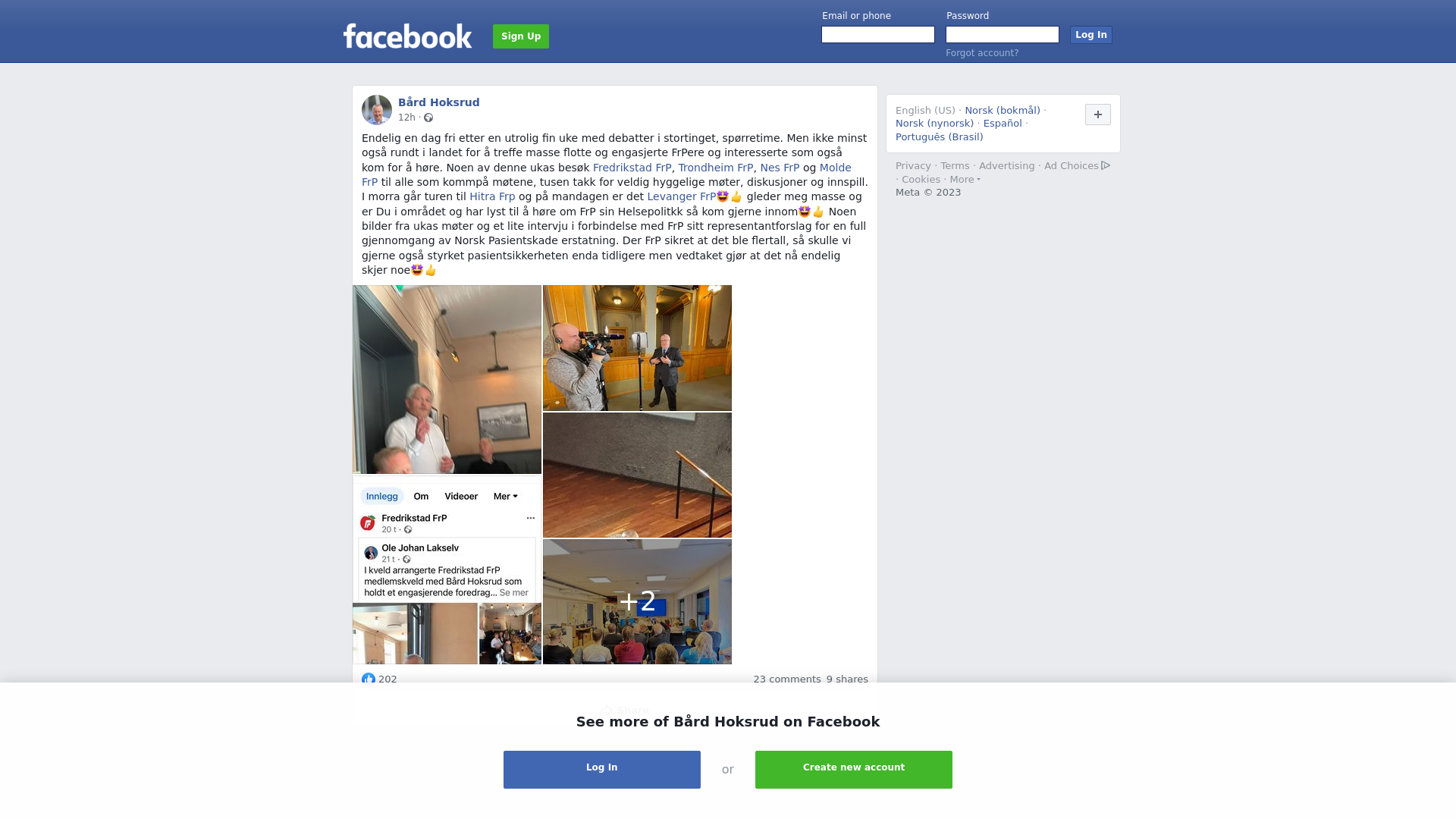 Endelig en dag fri etter en utrolig fin uke med debatter i stortinget, spørretime. Men ikke minst også rundt i landet for å treffe masse flotte og engasjerte FrPere og interesserte som også kom for å høre. Noen av denne ukas besøk Fredrikstad FrP, Trondheim FrP, Nes FrP og Molde FrP til alle som kommpå møtene, tusen takk for veldig hyggelige møter, diskusjoner og innspill. I morra går turen til Hitra Frp og på mandagen er det Levanger FrP🤩👍 gleder meg masse og er Du i området og har lyst til å høre om FrP sin Helsepolitkk så kom gjerne innom🤩👍 Noen bilder fra ukas møter og et lite intervju i forbindelse med FrP sitt representantforslag for en full gjennomgang av Norsk Pasientskade erstatning. Der FrP sikret at det ble flertall, så skulle vi gjerne også styrket pasientsikkerheten enda tidligere men vedtaket gjør at det nå endelig skjer noe🤩👍