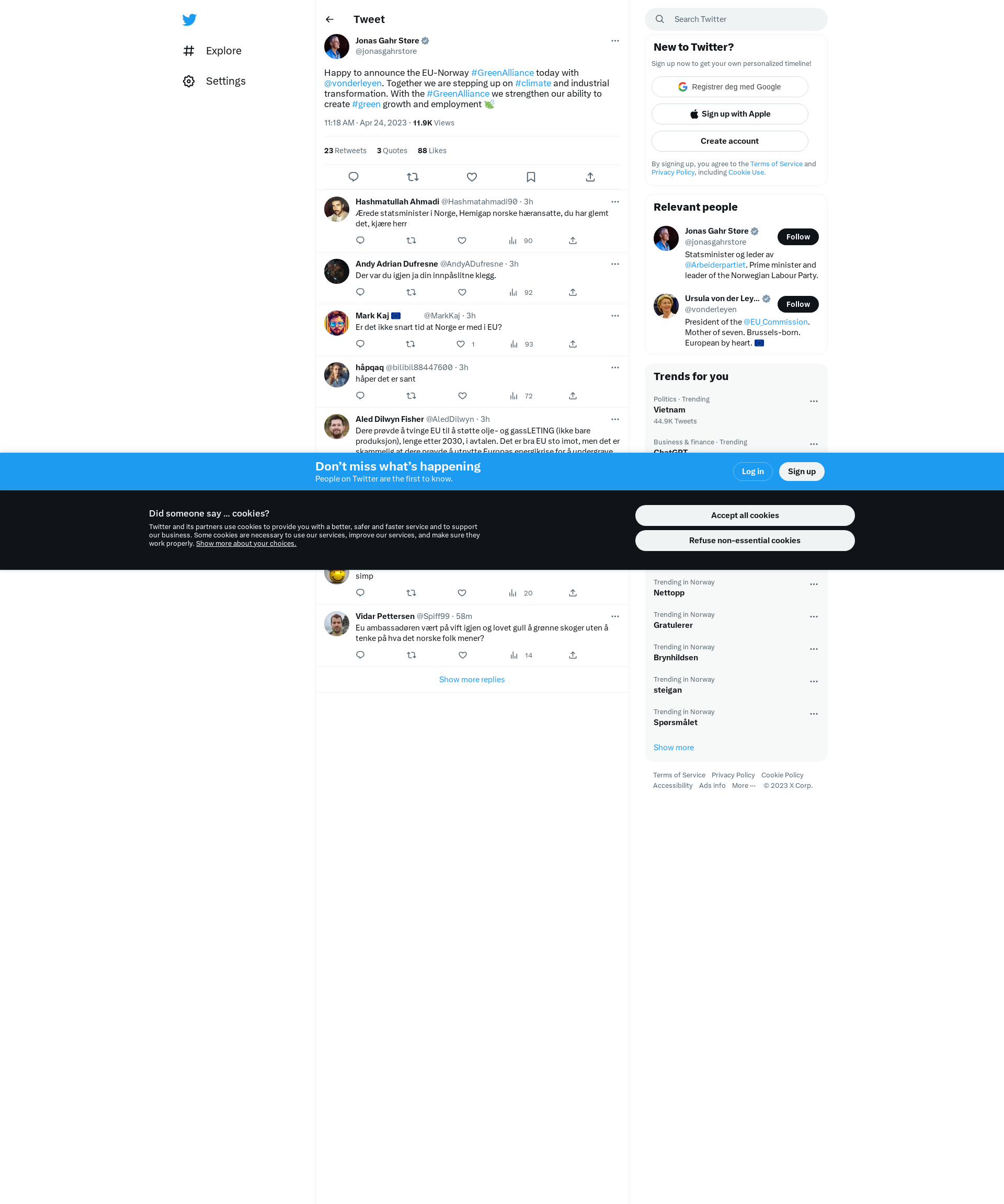 Happy to announce the EU-Norway #GreenAlliance today with @vonderleyen. Together we are stepping up on #climate and industrial transformation. With the #GreenAlliance we strengthen our ability to create #green growth and employment 🍃