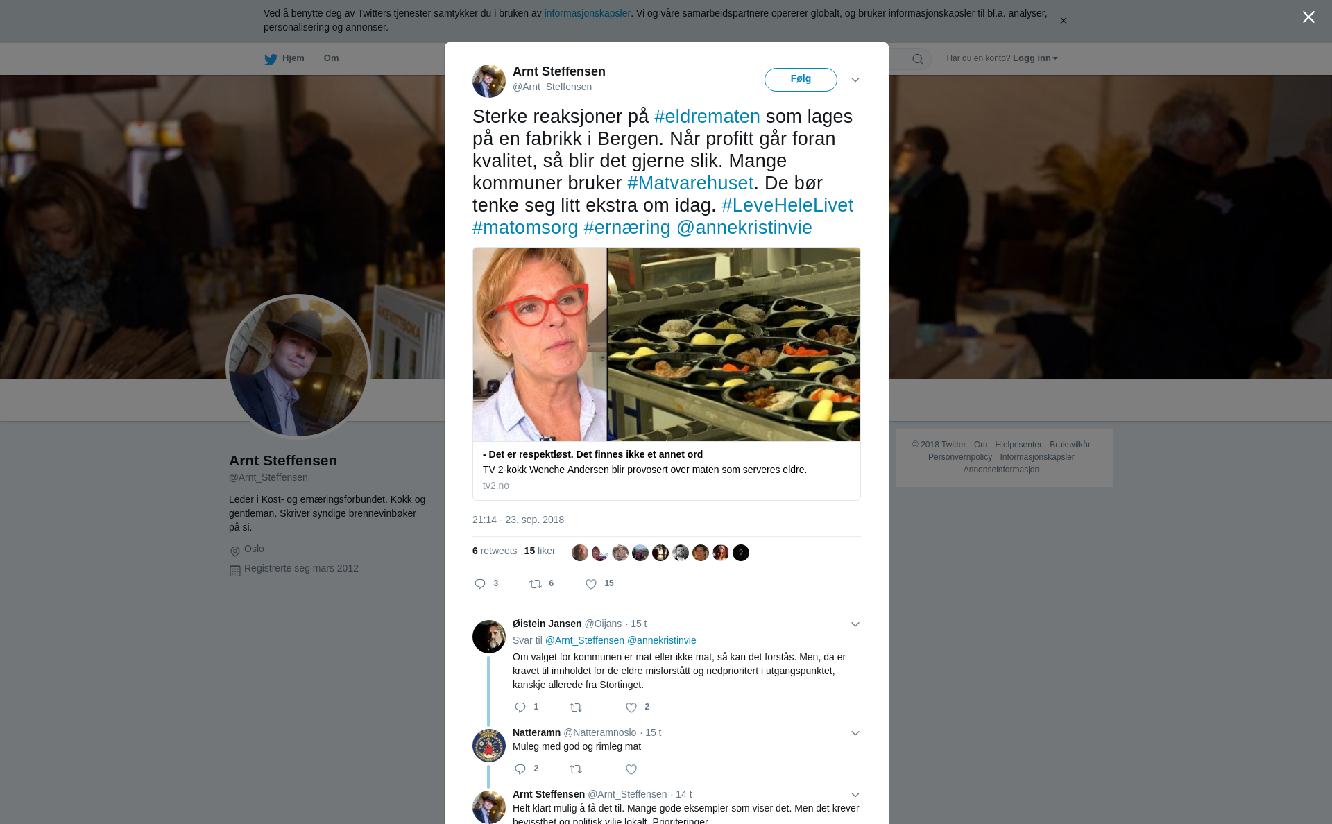 RT @Arnt_Steffensen: Sterke reaksjoner på #eldrematen som lages på en fabrikk i Bergen. Når profitt går foran kvalitet, så blir det gjerne slik. Mange kommuner bruker #Matvarehuset. De bør tenke seg litt ekstra om idag. #LeveHeleLivet #matomsorg #ernæring @annekristinvie https://t.co/xdxwaLSmXS
